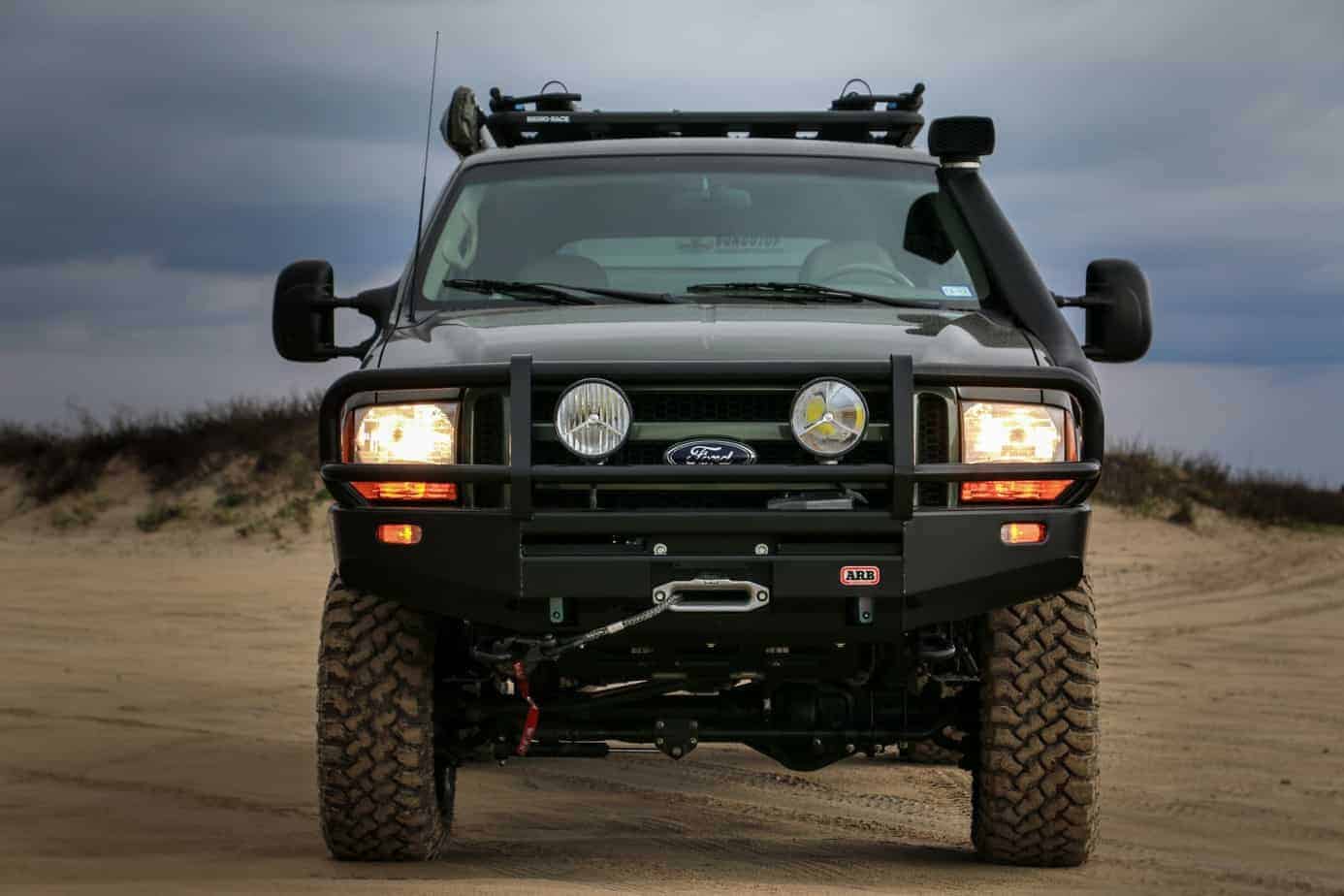 Of course everyone talks about safety with ARB, but there are other benefits worth mentioning. For starters, most vehicles receive a significantly better approach angle thanks to the bumper’s shape. Our Ford Excursion was instantly transformed from a soccer mobile into a trail worthy truck by removing the stock bumper and lower fascia. We’ve also found that when the additional clearance doesn’t quite cut it on the trail, these bumpers can take a decent rock hit without bending or breaking. They aren’t bed lined though, so the paint will definitely suffer. If you’re building a dedicated trail rig and simply want maximum clearance, a slim line or tube bumper would probably be a better fit.