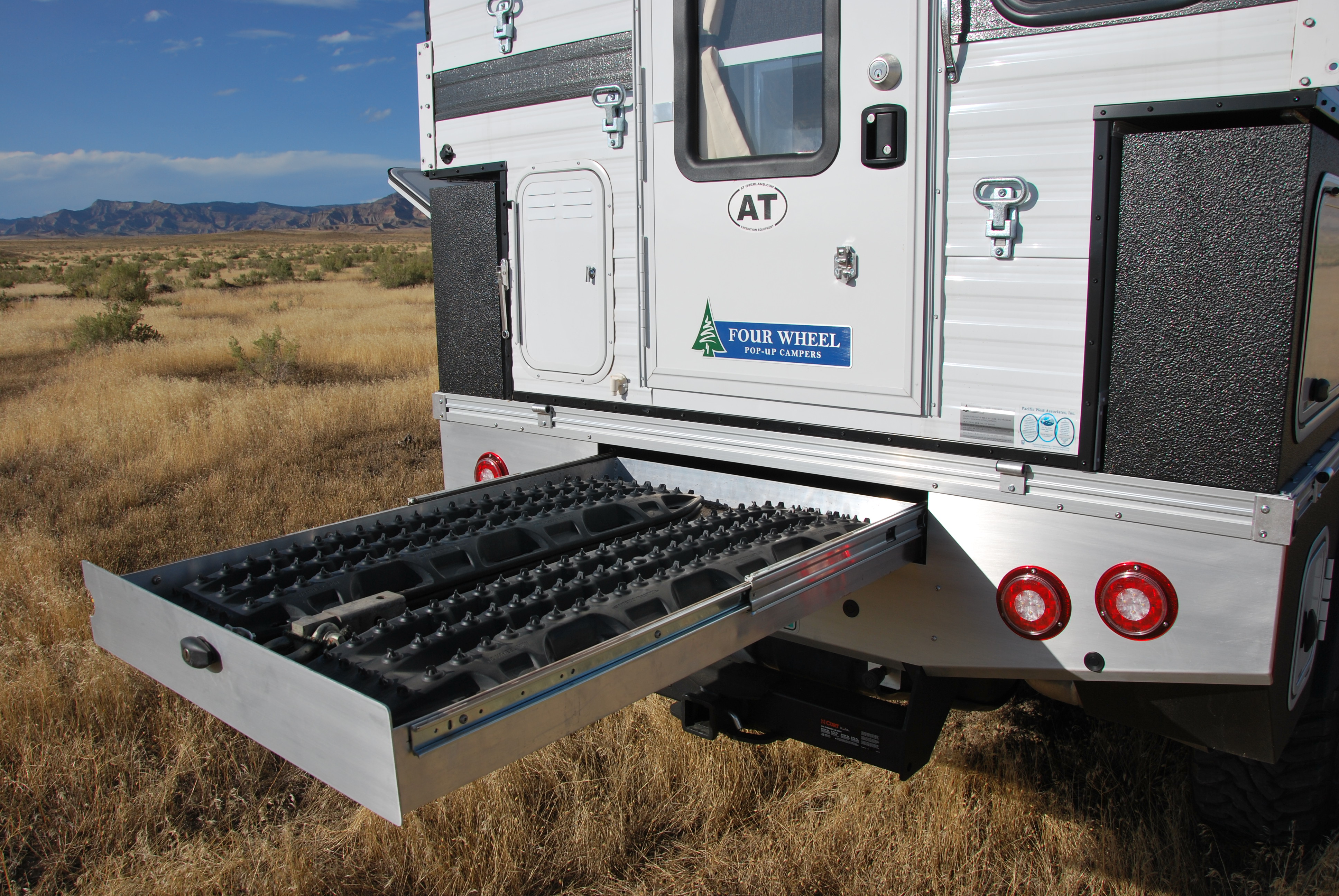 With the tray and boxes, the truck can be used in multiple configurations, from a bare bed to just the boxes or even a Four Wheel Camper (as shown below). Four turnbuckles secure the camper, and only four bolts are required to mount the boxes. Overall, these new AT Overland Tray Bed and Composite Boxes are an impressive new option for full-size truck buyers, giving a broad range of options. adventuretrailers.com | 877-661-8097