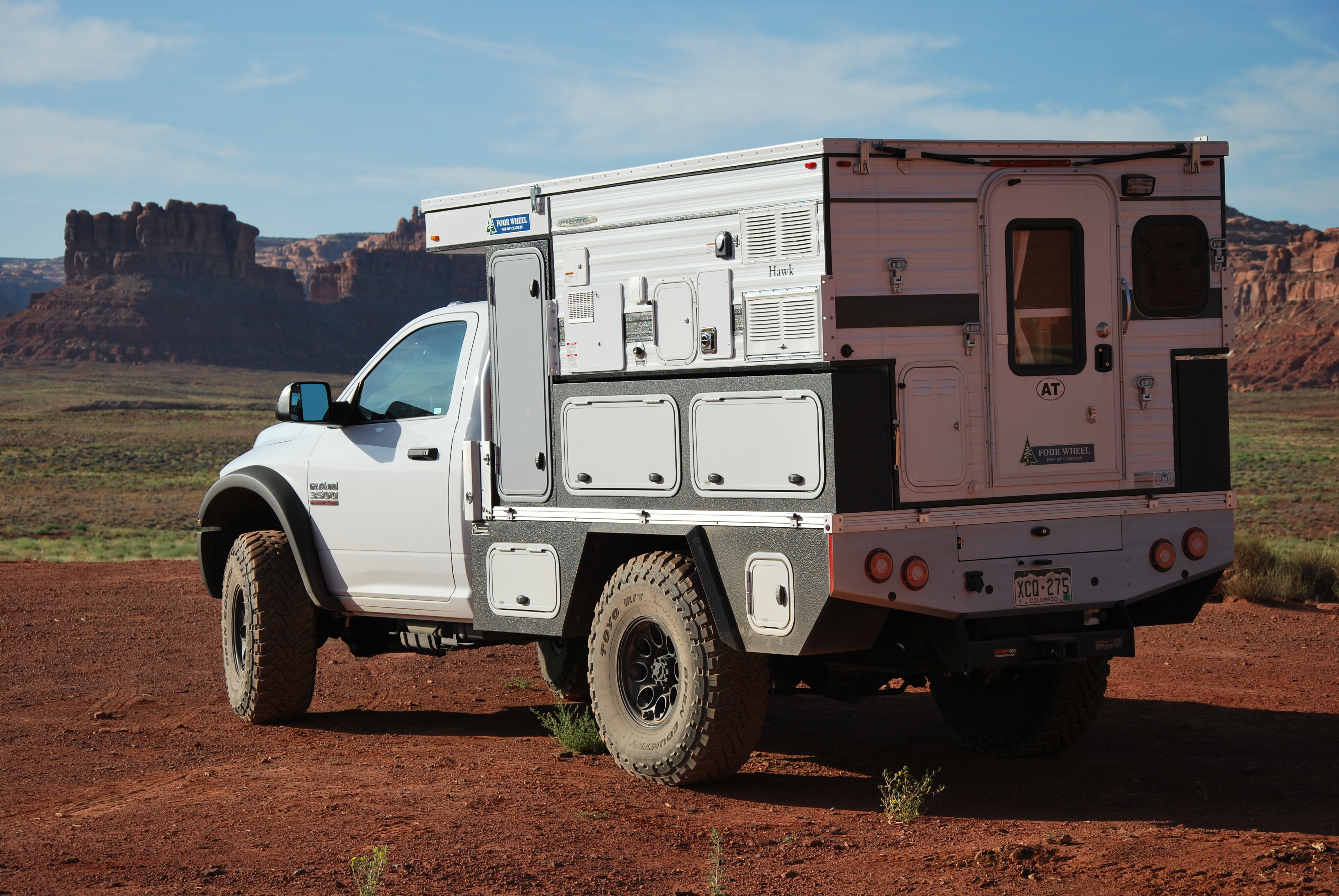 With the tray and boxes, the truck can be used in multiple configurations, from a bare bed to just the boxes or even a Four Wheel Camper (as shown below). Four turnbuckles secure the camper, and only four bolts are required to mount the boxes. Overall, these new AT Overland Tray Bed and Composite Boxes are an impressive new option for full-size truck buyers, giving a broad range of options. adventuretrailers.com | 877-661-8097