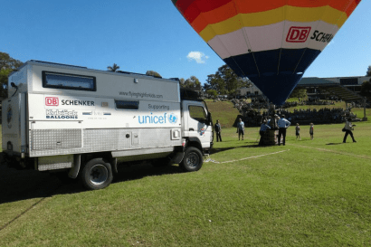 Andrew Parker circumnavigates the globe by truck and balloon to raise funds for UNICEF.