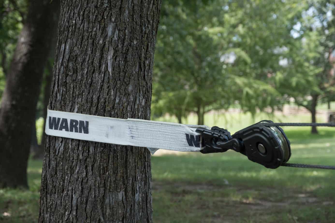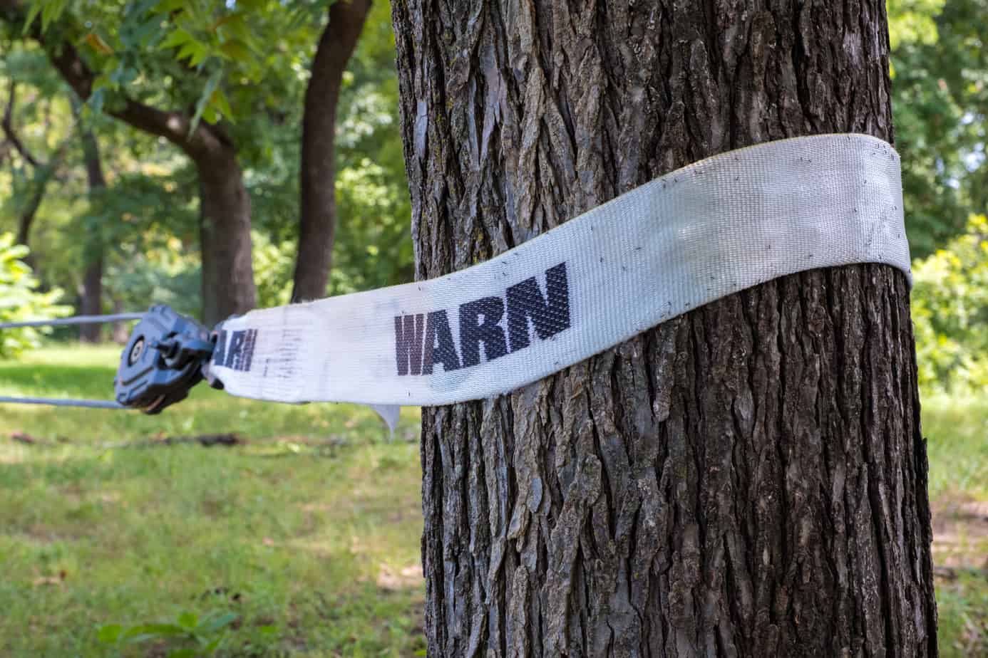 A tree truck protector is a static strap used to anchor a winch line to a tree, rock, or other solid object. It is meant to prevent damage to the tree as well as your winch line, and must be used in conjunction with a shackle for a proper connection. To clarify, do not hook your winch hook directly onto a tree strap, and don’t ever wrap your cable around a tree and hook it back to the cable. Both can damage the components and lead to dangerous failures, as well as damaging the environment.