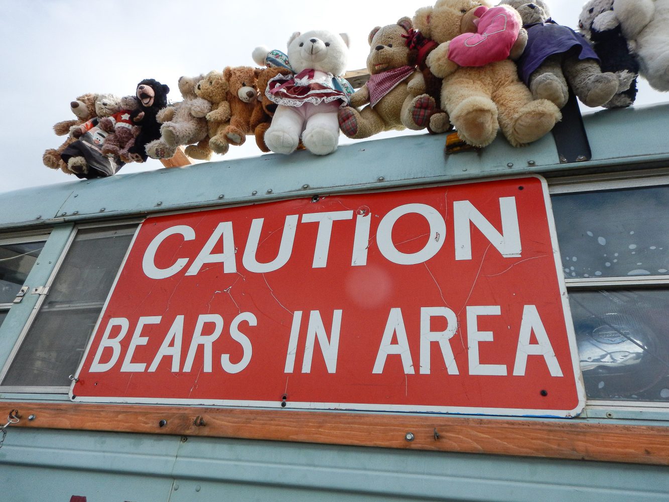 When my husband and I rode to the Yukon and Alaska, we saw signs of black and brown bears almost daily, mostly in the form of fresh, steaming bear scat.