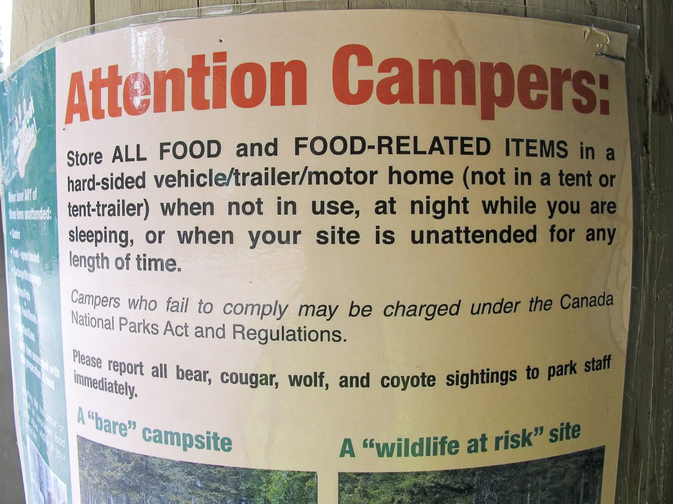 Even if you’re traveling with a vehicle and can store odorous items inside, that may not be good enough. Bears are known for breaking into cars too. Always lock vehicles overnight in bear country.