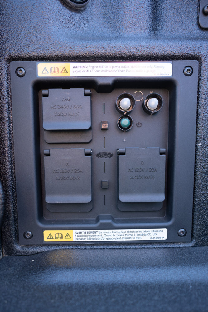 The model that we tested also had Ford’s onboard ProPower which delivers up to 7,200 watts of AC power to multiple standard 110-volt outlets, courtesy of the Powerboost engine (full disclosure, we didn’t test this feature).