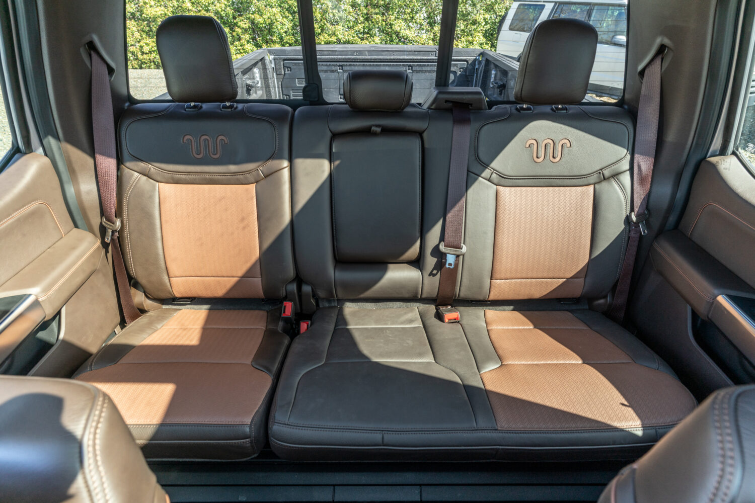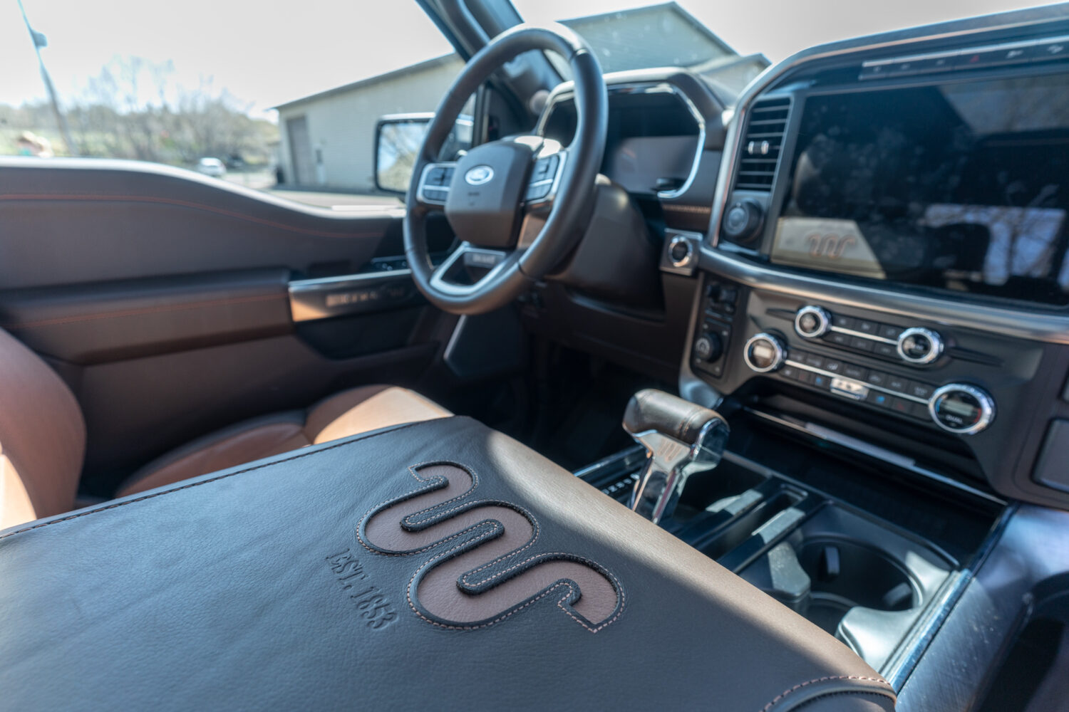 And opening the driver’s door delivered a similar experience. Two-tone brown leather upholstery with the signature King Ranch squiggle (brand) assured me that I was about to be pampered. All joking aside, the exterior and interior are both things of beauty, and while they are a little bit flashy, I think that the overall appearance is well-executed.