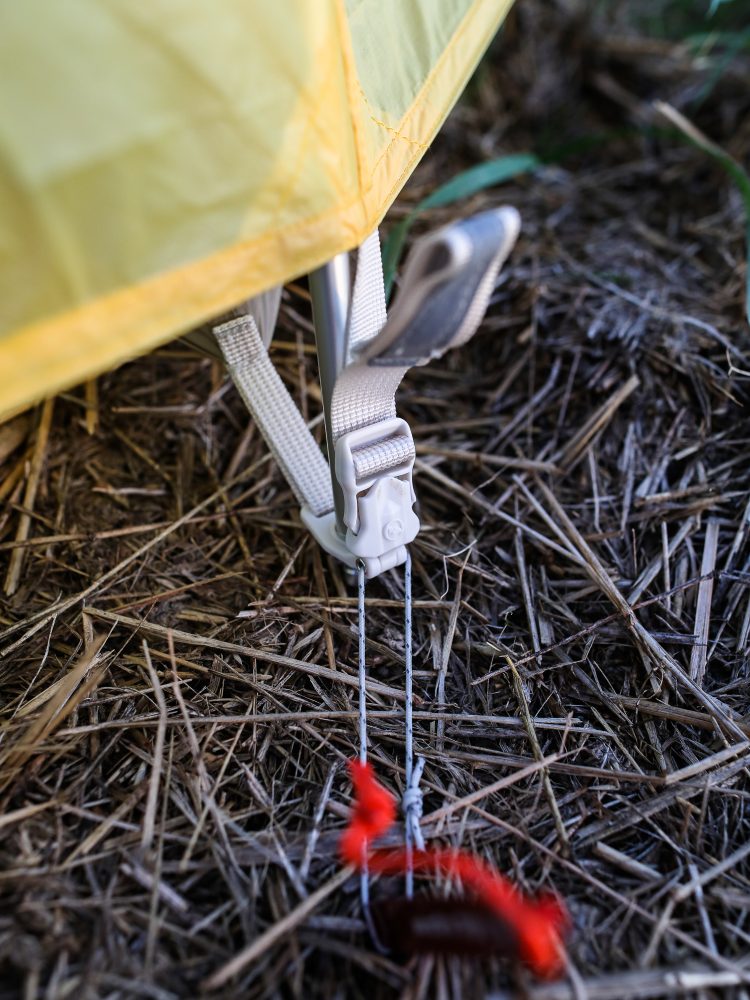 The UL2 is self-standing, useful when the ground proves too hard or soft for stakes. A proprietary tent corner construction and unique TipLok buckle system streamline setup by combining three functions: securing pole-tip capture, rainfly attachment and tensioner, and stake-out loop. The buckle has a keyed hole, so the pole tip locks securely into place once inserted, and the hinged design stabilizes the structure by equalizing forces between the tent body, rainfly, and ground stakes.