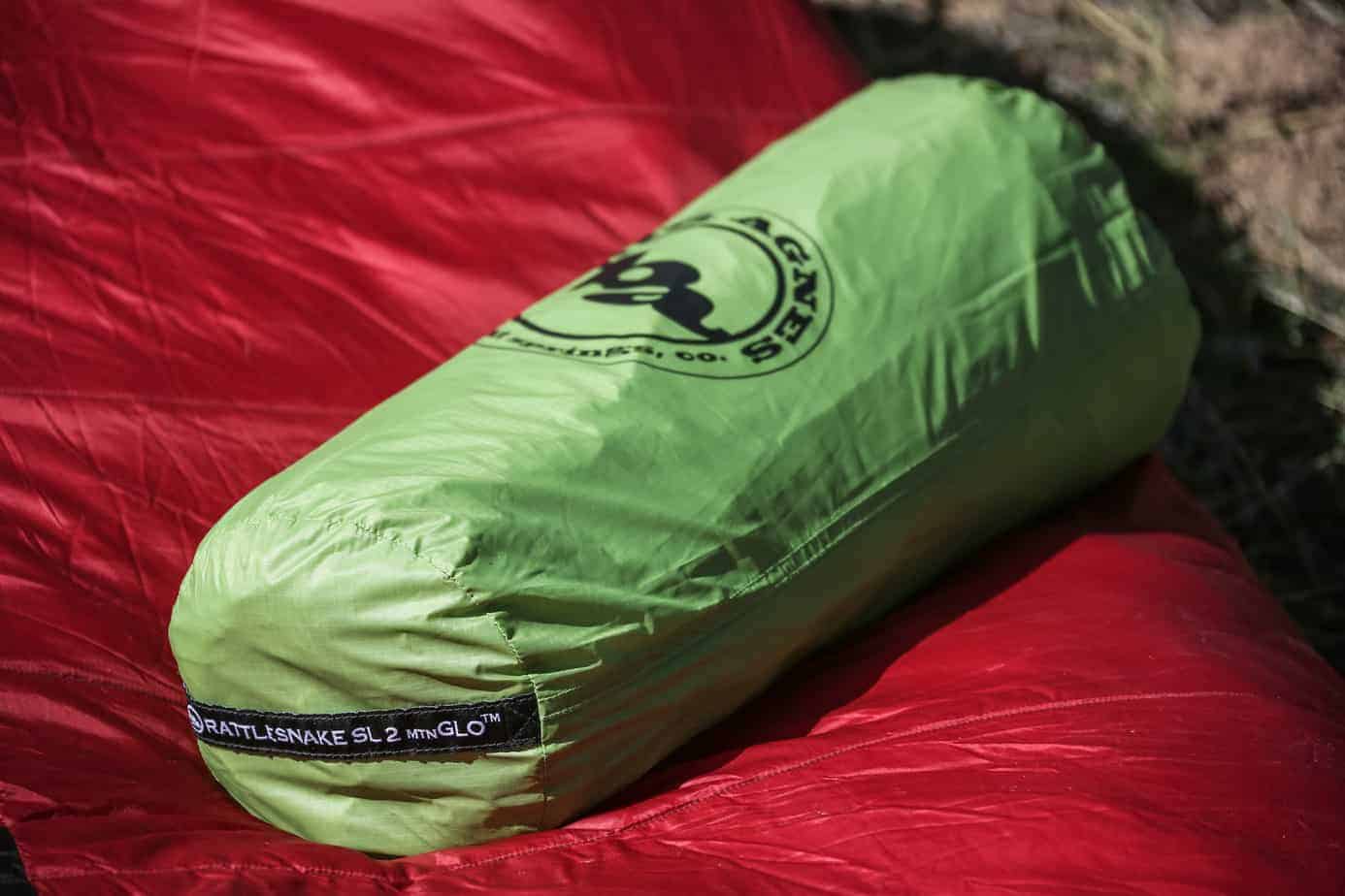Rattlesnake SL2 mtnGLO Tent: The Big Agnes Rattlesnake is an award-winning tent that is both a good value and feature-rich. Set up is simple with on main pole system and a few rafter poles. It packs compact and light, perfect for motorcycle travel. Without the rainfly, the mesh area is generous and is complimented by a waterproof tub/floor. The innovative nightlight is good for changing and finding items in the tent, but is not quite bright enough to read by.