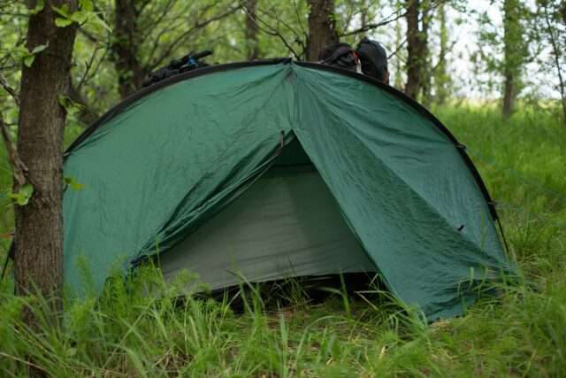 Moreover, although it’s not the lightest tent, it’s definitely not a heavy four-season home at 44 ounces (1,250 grams). I love a minimalist tarp for overnighters and shorter rides, but on longer trips or in cold climates, the exposure becomes draining. A proper shelter that offers complete protection from the elements with ample headroom to sit up and enough space to fully extend whilst sleeping is blissful. The Phreeranger design is nigh on perfect in these respects, additionally featuring inner pockets, dual entries (ideal for creating airflow in the summer), and large vestibules on both sides for storing muddy gear outside of your living area whilst still protecting them from the elements. It’s a proper home away from home—not just somewhere to sleep.