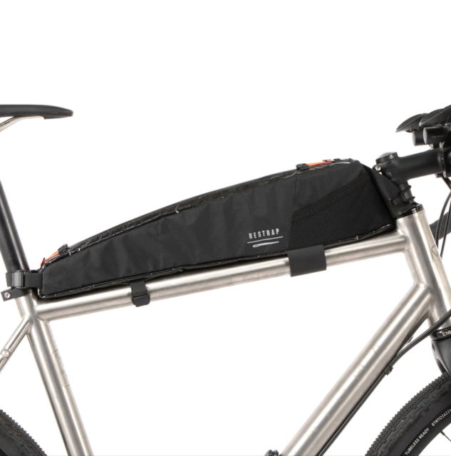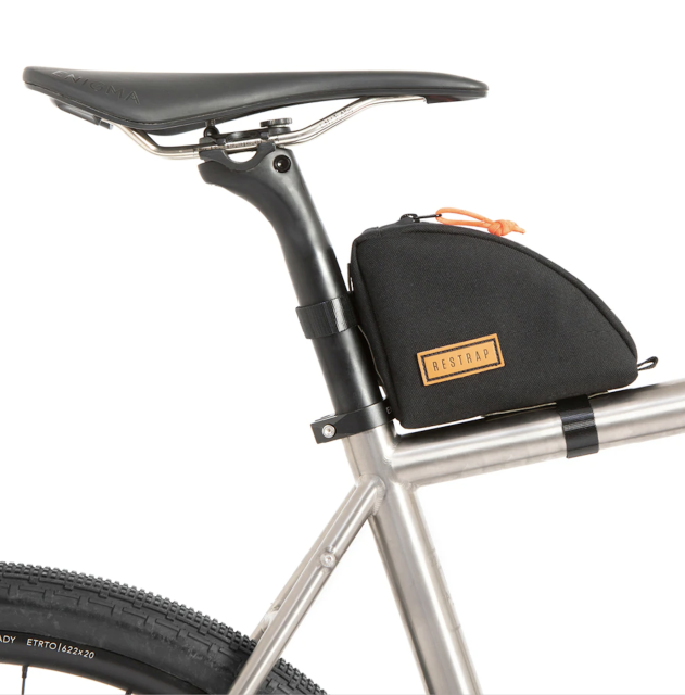 As the name suggests, this bag secures to the top tube (and headset) and is perfect for storing smaller items, such as tools, phones, spare inner tubes, or snacks. Restrap recently released their Race Top Tube Bags, which offer a greater capacity, and integrate a stretch mesh side pocket.