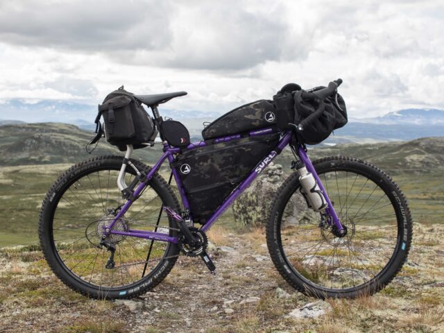 The frame bag is one of the most distinctive characteristics of a bikepacking setup, utilised by most riders (in varying formats). If there’s one bag that maximises wasted space more than any other, it’s the frame bag. There are a number of universal offerings available (from the Realms of Revelate Designs, Alpkit, Blackburn Designs, Ortlieb, Restrap, and others), and many smaller companies offer a tailor-made option to ensure a perfect fit.