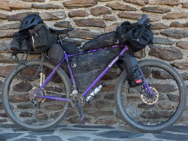 Traditionally, this literally meant a bag secured to the handlebars (such as Ortlieb’s Ultimate Six, Brooks’ Cornwall, or Velo Orange’s Randonneur). However, bikepacking introduced a wave of new configurations that varied from the traditional handlebar bag to more intricate harness arrangements. I still enjoy the aesthetic of classic bags, but storage is limited, and on technical terrain, they can be more unwieldy. A harness-based system offers increased storage, is exceptionally secure, and mounts neatly below/in-line with the handlebars (keeping weight low and close to the bike, which is advantageous for rough trails).