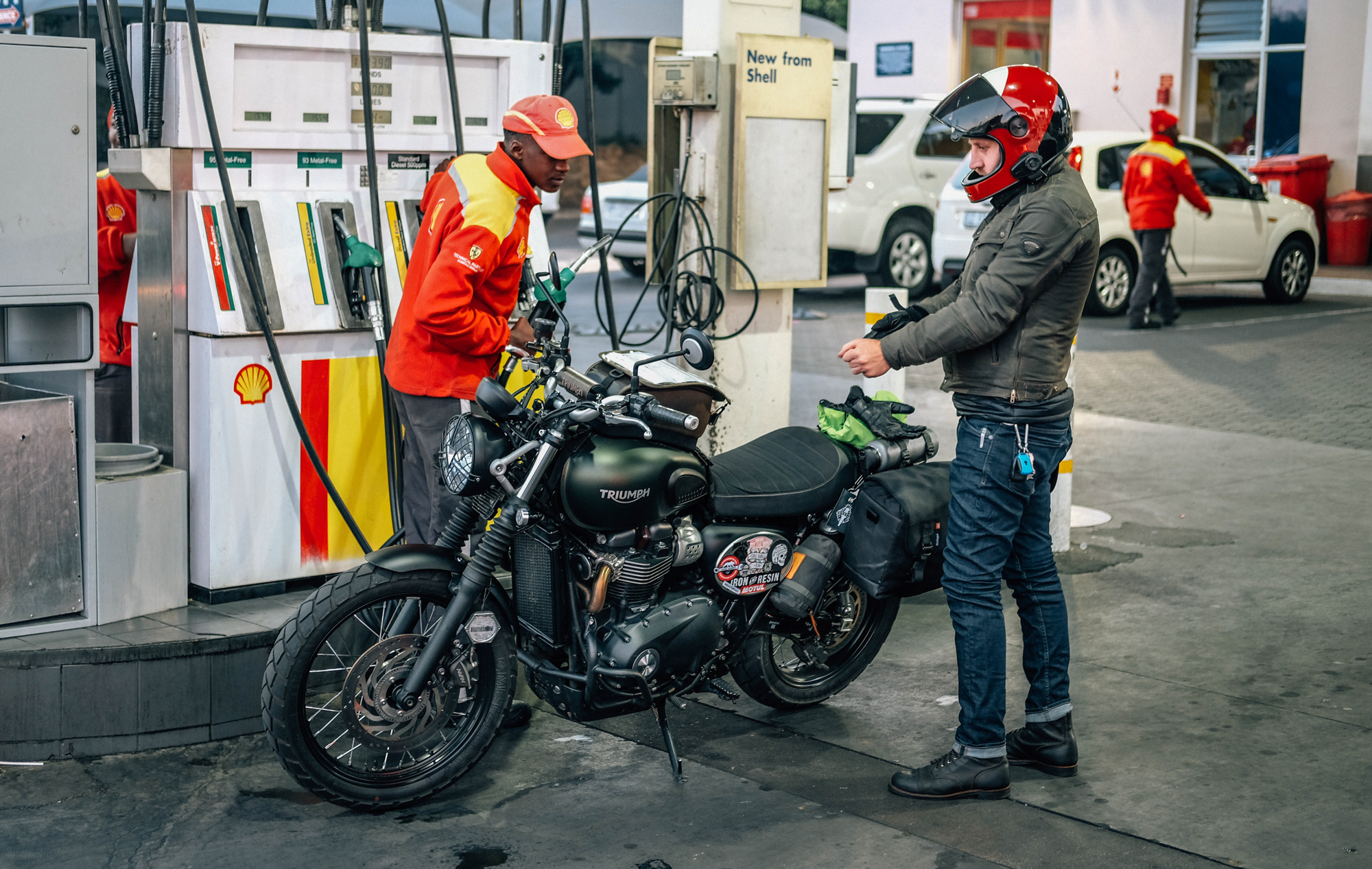 The road from Steampunk to Himeville is truly amazing. Long, wide corners, and fast-paced sections—the group split up into various rider comfort level and we all made it safely to Himeville Arms for what turned out to be a rather disappointing experience. Alas, we needed to get moving—filled the bikes up and made our way to the Sani Border.