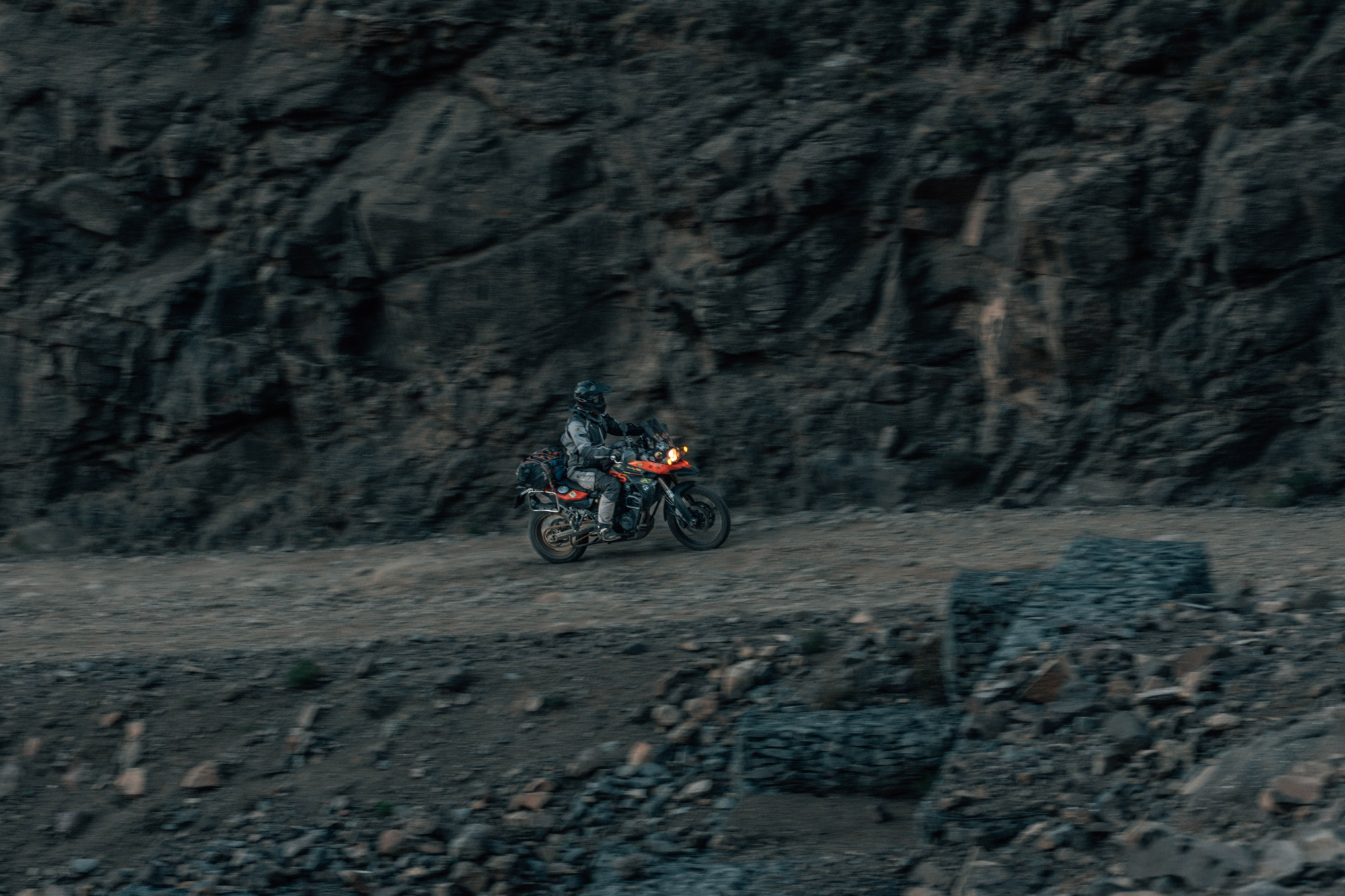 As soon as we hit the dirt portion of the pass, we were greeted by massive trucks carrying dirt and rocks to a construction site at the base of the pass. All part of the laborious process of having the pass tarred. With the setting sun above us and dust all around it made for quite a hectic ride in. The closer to the border we got, the larger the gaps that formed and the less dust we were eating. After going through border control we went through the river crossing and quickly realized that the pass we knew from years before had gotten much tougher. Due to the recent bad weather, there were large, loose rocks all over the place and on this dry day, it was a real challenge to find a good line.