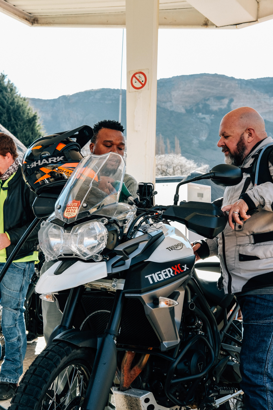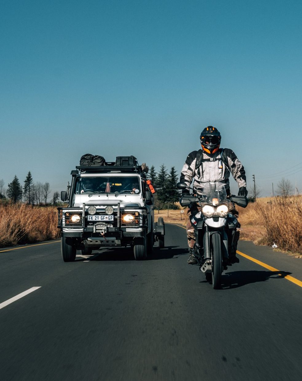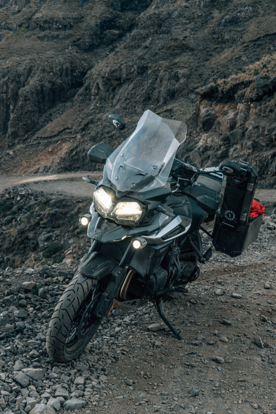 For this year’s Bonafide Moto Adventure to Sani Pass there were a total of 25 of us who made the trip on a wide range of bikes. There were 17 riders from Johannesburg, 5 from Durban, 2 content creators, 1 medic, and a driver, Jaco, courtesy of Front Runner and their trusty Defender 130 with a trailer, spares, and tools provided by Triumph Motorcycles South Africa. Jaco literally never stopped smiling the whole trip—guess who’s buying a motorcycle now?