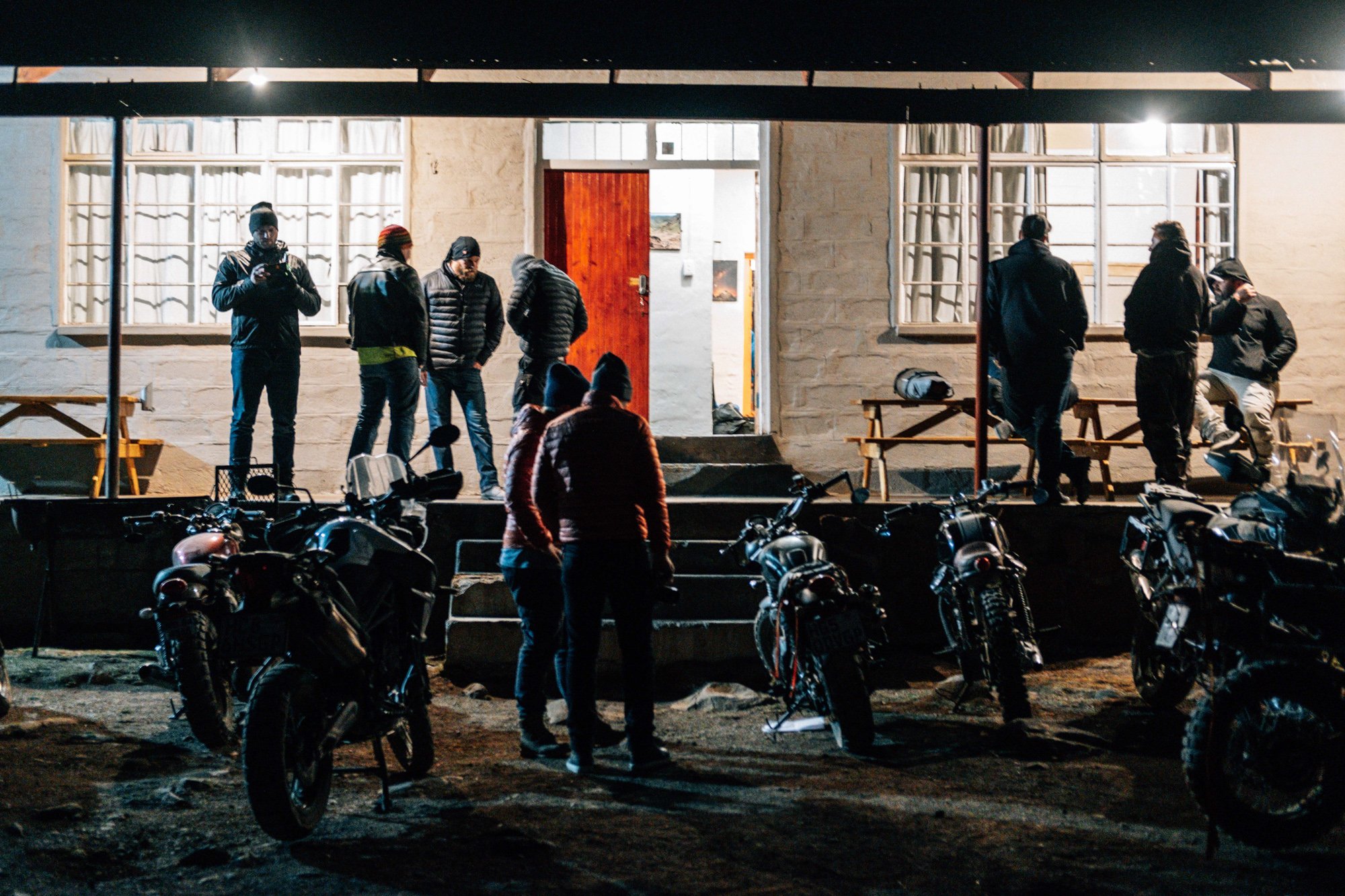 As mentioned before, we seemed to be chasing the light all along the way. Just 10 minutes before the border gate closed (6:00 p.m.), and shortly after the sun had tucked behind the mountains, the last rider came through. All riders were accounted for and everyone could be found with a smile, a cold Maluti, and bundled up next to one another inhaling the anthracite fumes burning in the fireplace, which, if you’ve never been before, is all part of the experience—this is the highest pub in Africa.