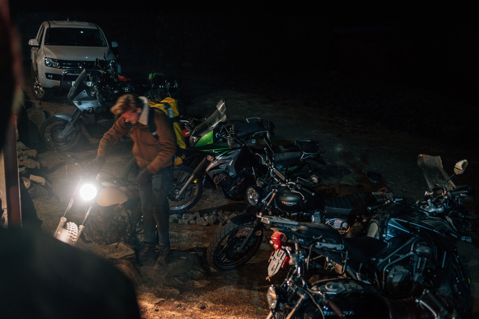The following day we had planned to go explore around in Lesotho a bit, but there were a few bikes that needed some minor repairs and everyone seemed to be a bit knackered from the day before. We wheeled a few bikes indoors, got out the Pratley Steel, and fixed a leaking sump, a few levers, and a foot peg. We decided to let everyone chill in the warmth, and to make our way down the pass no later than 12:00 p.m.