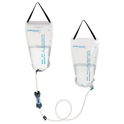 The Platypus Gravityworks is exactly what you would expect it to be; it is a filtration system using good old gravity instead of elbow grease to filter water. Simply fill the “dirty” bag with untreated water and let gravity deliver it to the “clean” bag, ready to drink. Central to the Gravityworks is a unique filter element constructed of hollow fibers that remove everything larger than .2 microns. With a maximum lifespan of 1500 liters, the Gravityworks filter can process water at under a liter a minute making it a very speedy means of treating large volumes of water.