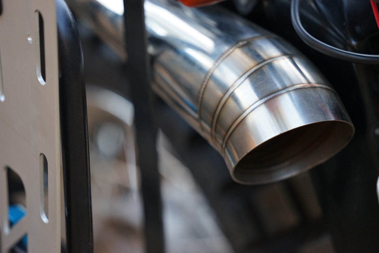 Replace with stainless 2-into-1 pipe and custom exhaust.