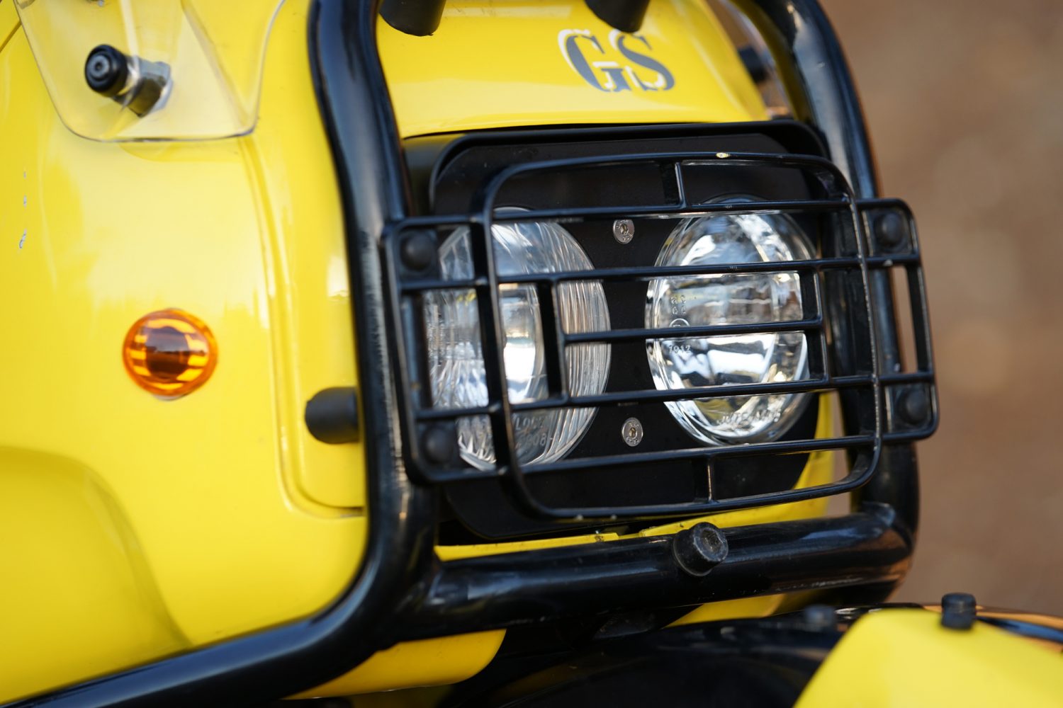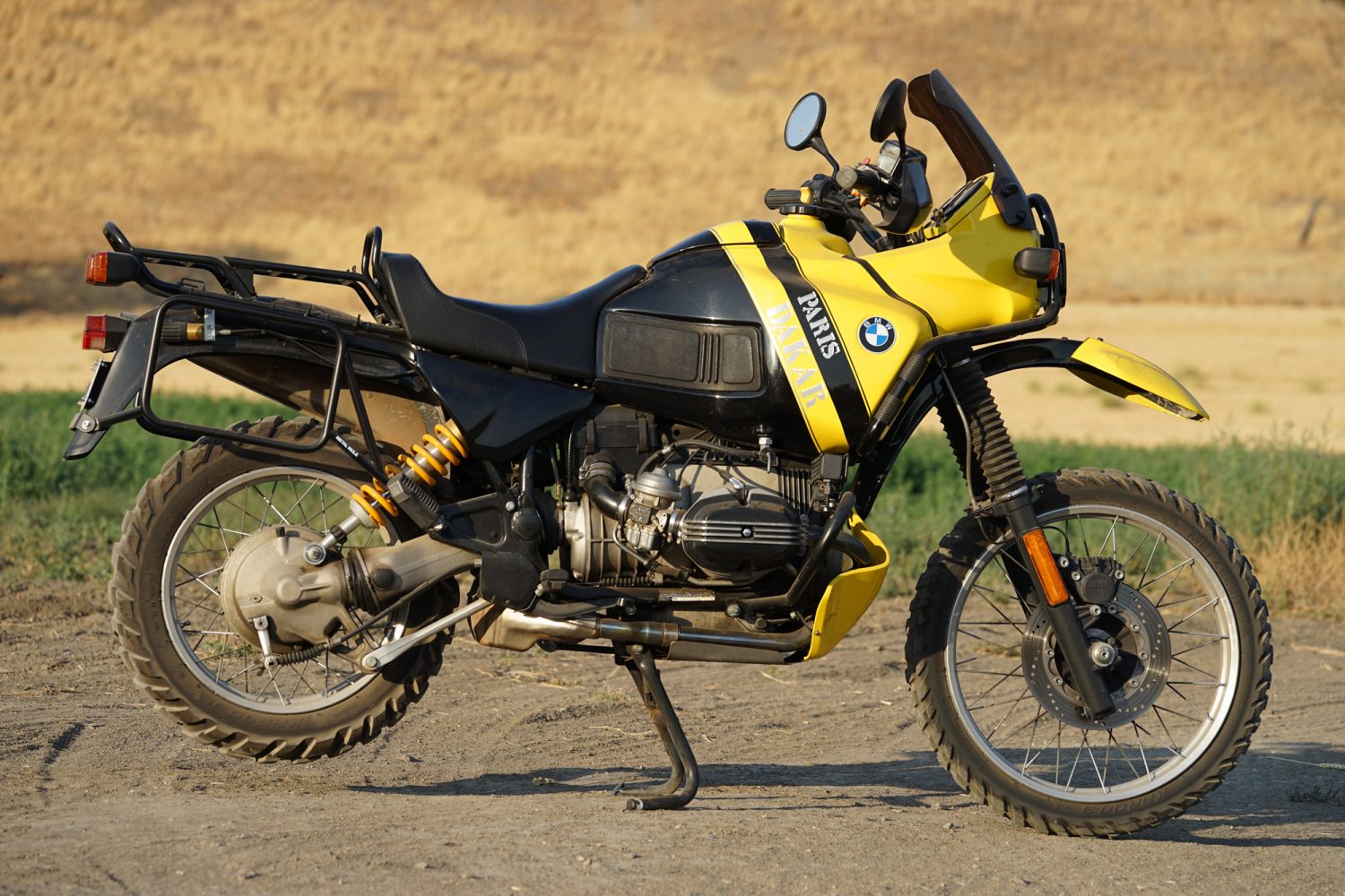 “Before” shot of the 1994 R 100 GS project bike adorned with BMW factory Paris–Dakar parts. The yellow/black livery applied by a previous owner, while not a factory PD color option, reflects a contemporary GS color scheme aficionados affectionately call “Bumble Bee.”