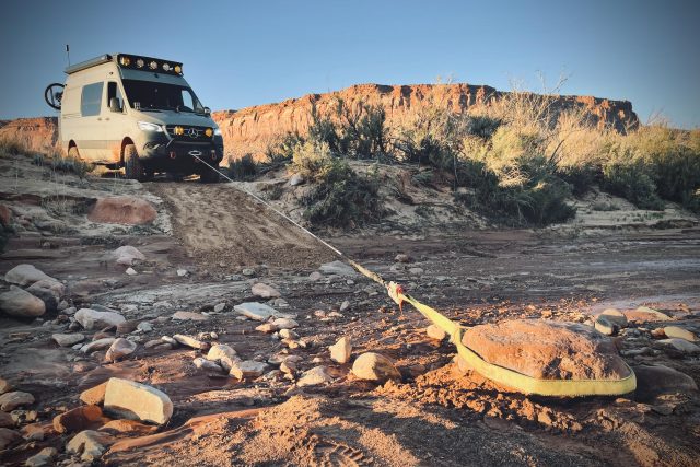 It’s been a transition as I get used to the change in weight and size. A big part of developing your driving skills is understanding the rig and its limits, so I’ve had to start over. The goal was to create the most off-road capable Sprinter possible, which meant lots of modifications, such as the Van Compass suspension kit. Choosing this vehicle was risky, and beforehand, I struggled to find any Sprinters online being used off-road. Sure, you see lots of jacked-up examples on social media, but you rarely see them actually overlanding.