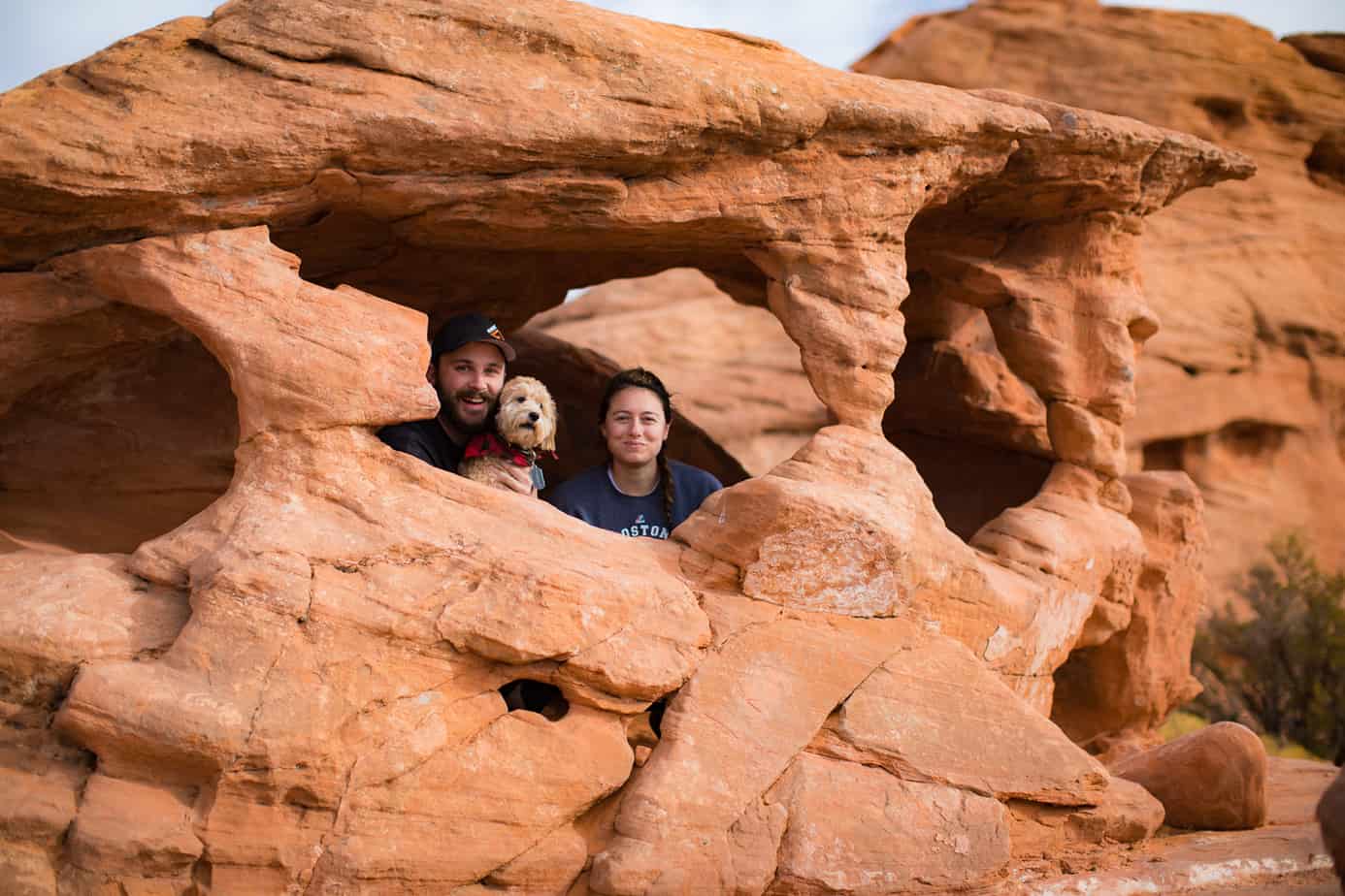 I’d been wanting to do this trip for a while now because my girlfriend, Olivia, has never been to these areas and one of my oldest/best friends Charlie has been wanting to go on a trip with me for a while now. We loosely talked about doing it a couple of months ago, but nothing was set in stone. A week before Christmas we decided to just do it! I had the route planned out from previous trips so it didn’t take long to get ready. We just had to download the appropriate maps offline, confirm the route, and pack the fridge. Here’s the crew: Olivia, me, Charlie, and Theo.