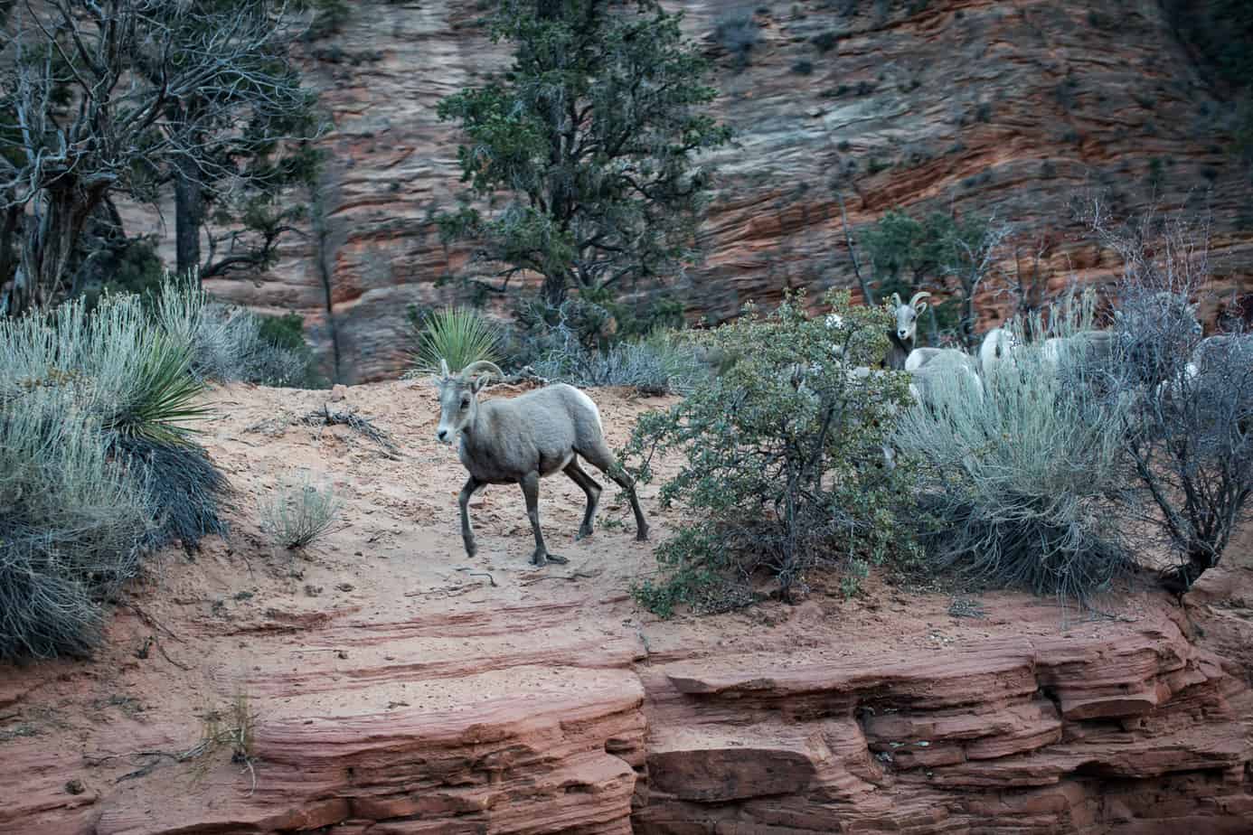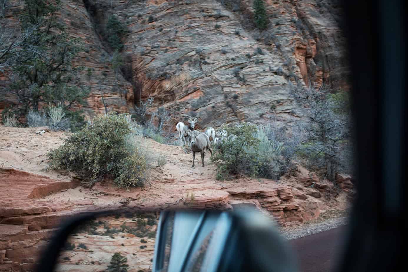 After spending a couple of hours walking through the canyons, we got back in the truck to head to camp which took us through Zion. Now anyone that’s read my trip reports before probably knows that National Parks are almost never on my to-do list. They’re overcrowded and often underwhelming given the traffic, trash and shear amount of people you run into. However, we lucked out and when we arrived at the gate there was no one working so we were able to drive through without paying the fee.. Luckily we didn’t hit too much traffic and we did get to see some big horn sheep, which I had yet to see in the wild.