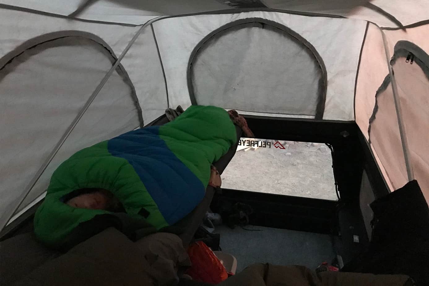 I woke up early to an absolutely beautiful sunrise, which revealed that we were atop a very large mesa. I kind of had an idea from the night photos I took but wasn’t exactly sure what it all looked like. The first photo is a cell phone shot out of the window in the Flippac, and the next is how we slept for the majority of the trip. The Flippac can easily sleep four people or more depending on their height.