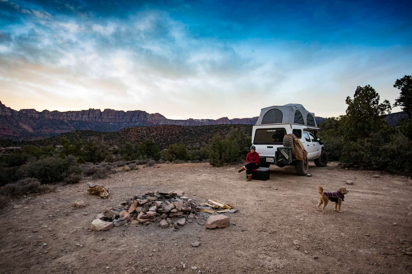After driving through Zion, we left the park and headed to camp which was nearby. We set up not knowing what was surrounding us as I had never been here before. This location was bestowed upon me by a good friend. We made sausages and sweet potatoes for dinner followed up by some s’mores for dessert. We just relaxed and talked by the fire for the next few hours. That was probably the best night for all of us, such a calm and somewhat warm night where we could really just chill with one another. It hadn’t been such a long day in the truck so that also felt good.