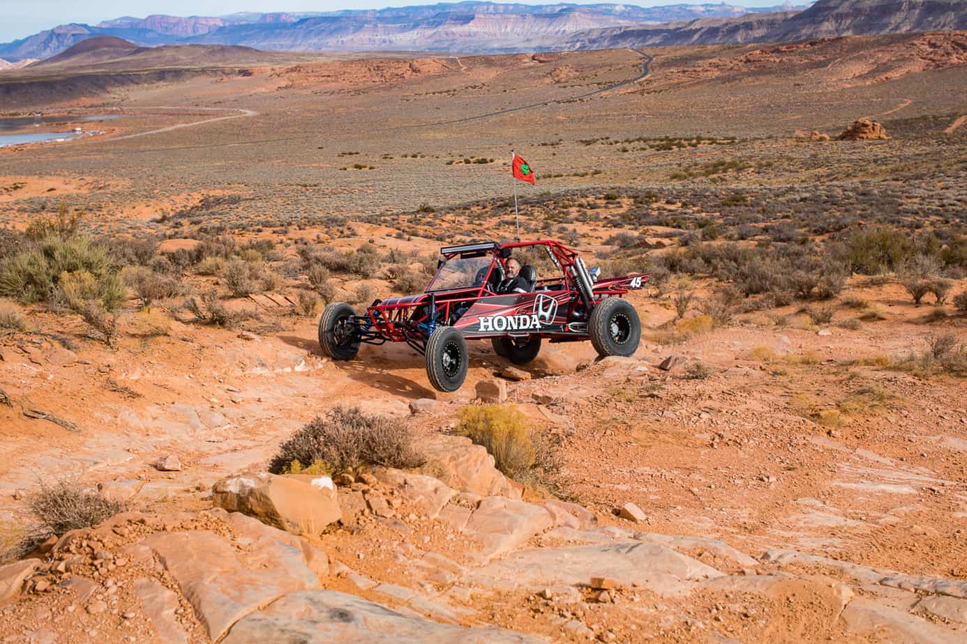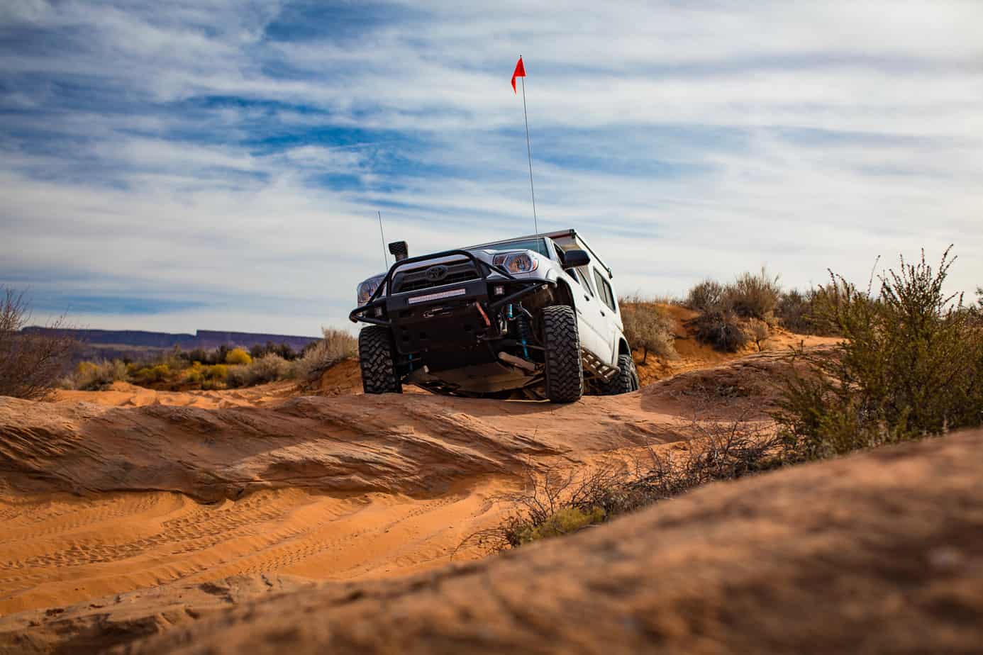 After enjoying the sunrise we got ready to leave without making coffee or breakfast (sinful, I know) but we had plans to stop in La Verkin and get breakfast at a local roaster there. It was well worth it. If you haven’t been to River Rock Roasting company and you’re near Hurricane, Utah, make sure you stop and get a cup or some food! After breakfast we had to stop to get a whip flag because where we were going requires them as it’s mostly sand dunes. With that said, our destination for the day was Sand Hollow OHV park. I had heard a lot about Sand Hollow and it did not disappoint. There is something for everyone there whether it’s sightseeing, sand dunes, or rock crawling. We had to play it safe with how heavy my truck is and the deep sand. We ran a few trails where I let Olivia and Charlie take turns at the wheel, and I could snap some pics which is always fun.