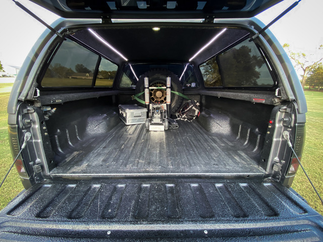 The bed is wired for a portable battery box to run a fridge