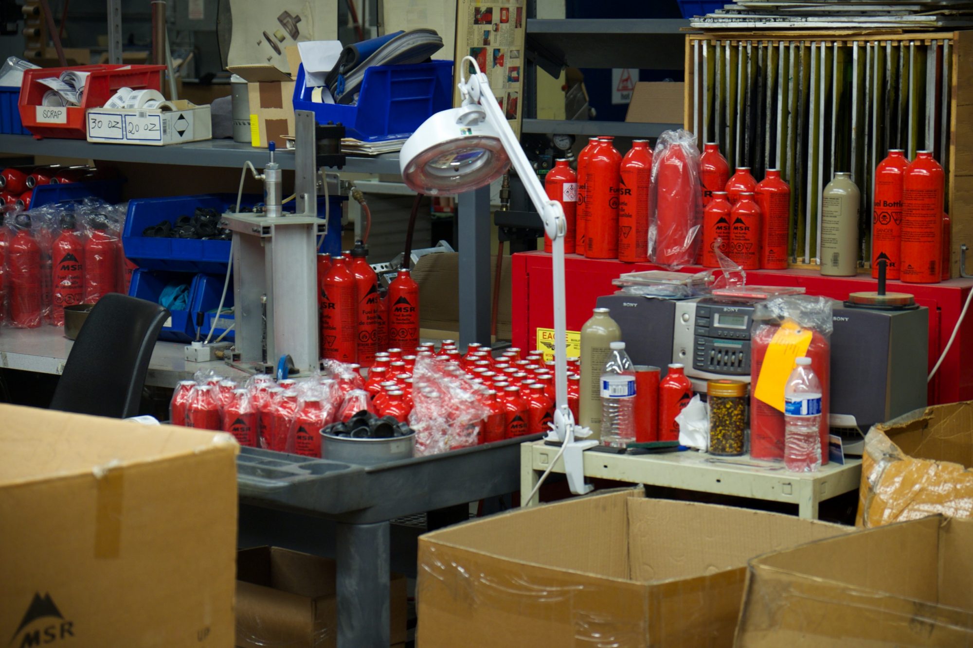 For many consumers it’s easy to mentally distill the manufacturing process down to the simplicity of a Dr. Seuss cartoon with raw materials dumped into one end of a machine, the finished product squirted out the other. It’s not nearly that simple. While touring the floor where stoves, water filters, and snowshoes are made, I observed one craftsman inserting a tiny piece of wire, scarcely larger than a hair, into a piece of brass the size of a grain of rice. I quickly recognized it as MSR’s self-cleaning Shaker Jet as used in their liquid fuel stoves. Not a difficult task on its own until replicated a thousand times over.