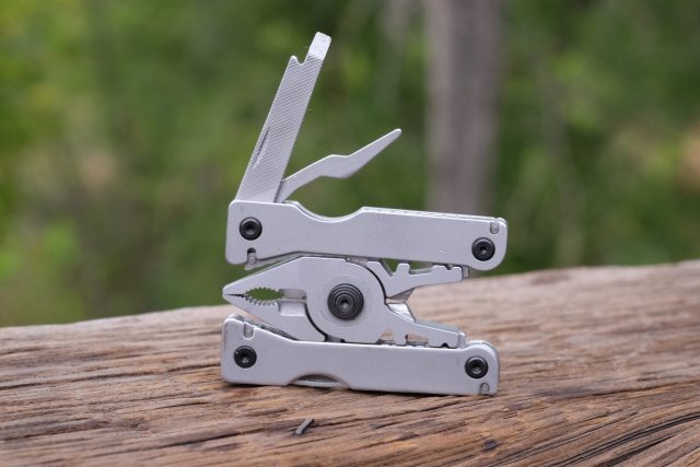 When I first saw the pre-production SOG Sync at last year’s Summer Outdoor Retailer Show, I admit I thought it was interesting, perhaps borderline unnecessary. Like a lot of things, it’s something you really don’t need—until you do. When that occasion arrises it’ll be right there under your belly button just waiting to save the day. Mounted to a belt buckle retainer, the Sync detaches from its mount with the push of a button. Once in hand the outer edges of the tool give access to four fold-out implements including a file, awl, eyeglass screwdriver, and a small knife. With the two handles extended, the Sync transforms into a compact set of pliers with wire cutters.