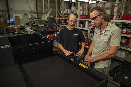 CORTEZ, Colo. – Tuffy Security Products, a leading manufacturer of secure storage for serious gear, helped Dan Grec live his dream of traveling across Africa for three years in a modified Jeep Wrangler. This week Grec made a personal appearance at the Tuffy Security Products facility in Cortez, Colorado to share how the company’s JK Security Glove Box (#149), JK Rear Console (#274), JK Conceal Carry Driver’s Side Security Drawer (#247) as well as JK Conceal Carry Passenger’s Side Security Drawer (#293)) were vital installations in his “dream house on wheels” for a solo drive across the harsh terrain of 35 African countries.