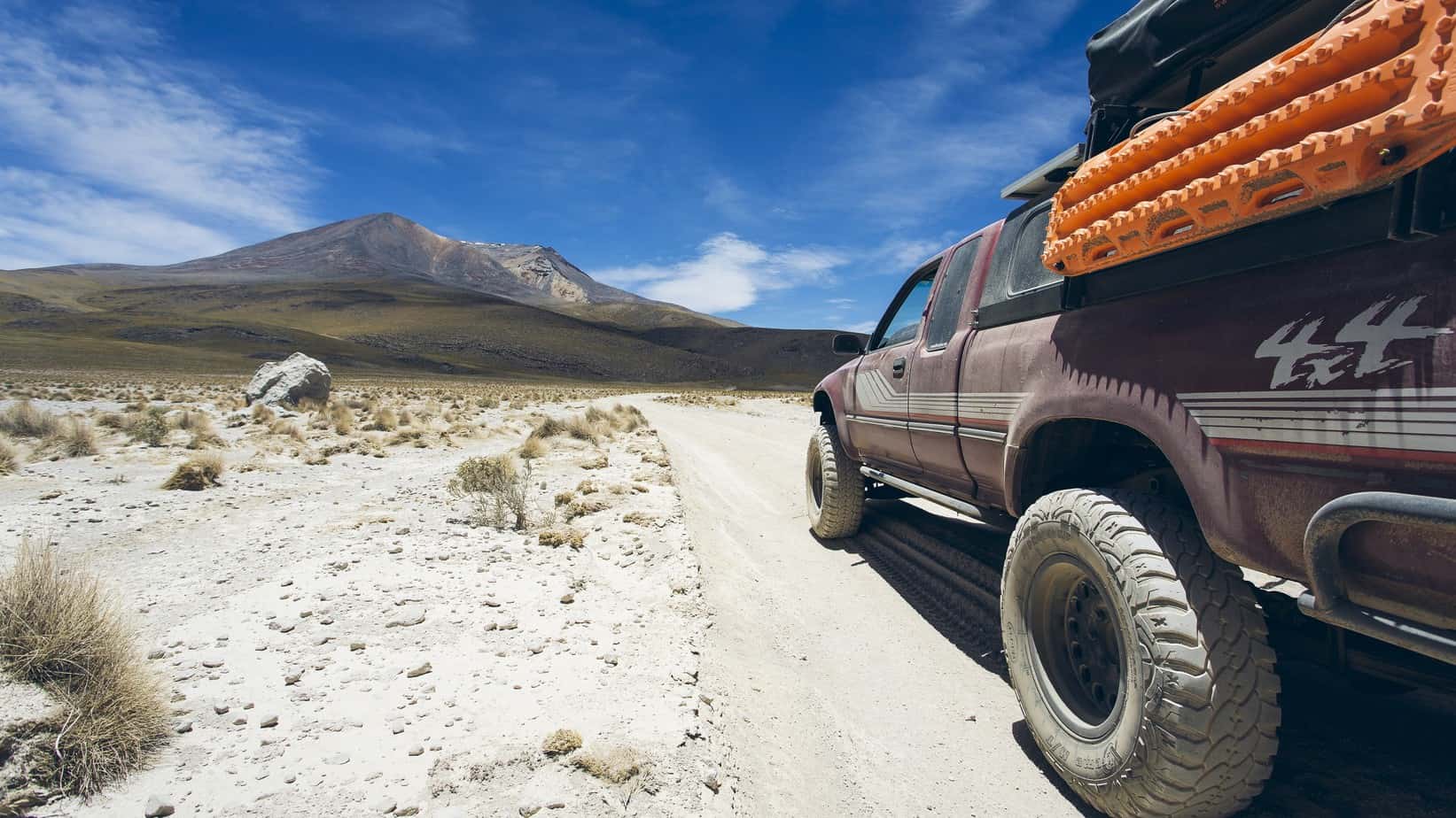 The infamous Lagunas Route (otherwise known as the Southwest Circuit) is a 400 plus kilometer off-road track from Uyuni, Bolivia to San Pedro de Atacama, Chile. Meandering through Bolivia’s altiplano, or high plain, the route winds through soft sand, over bumpy washboards and through short sections of rocky outcrops. The scenery is otherworldly, desolate and beautiful. Glacial salt lakes appear in strange, vivid colors such as rusty reds and alien greens. Latte toned volcanic peaks appear on the horizon as though painted in watercolor. Pink flamingos huddle together in the middle of semi-frozen lakes attempting to conserve body heat in the sub-zero temperatures. As the Talking Heads once said, “And you may ask yourself, well… how did I get here?”