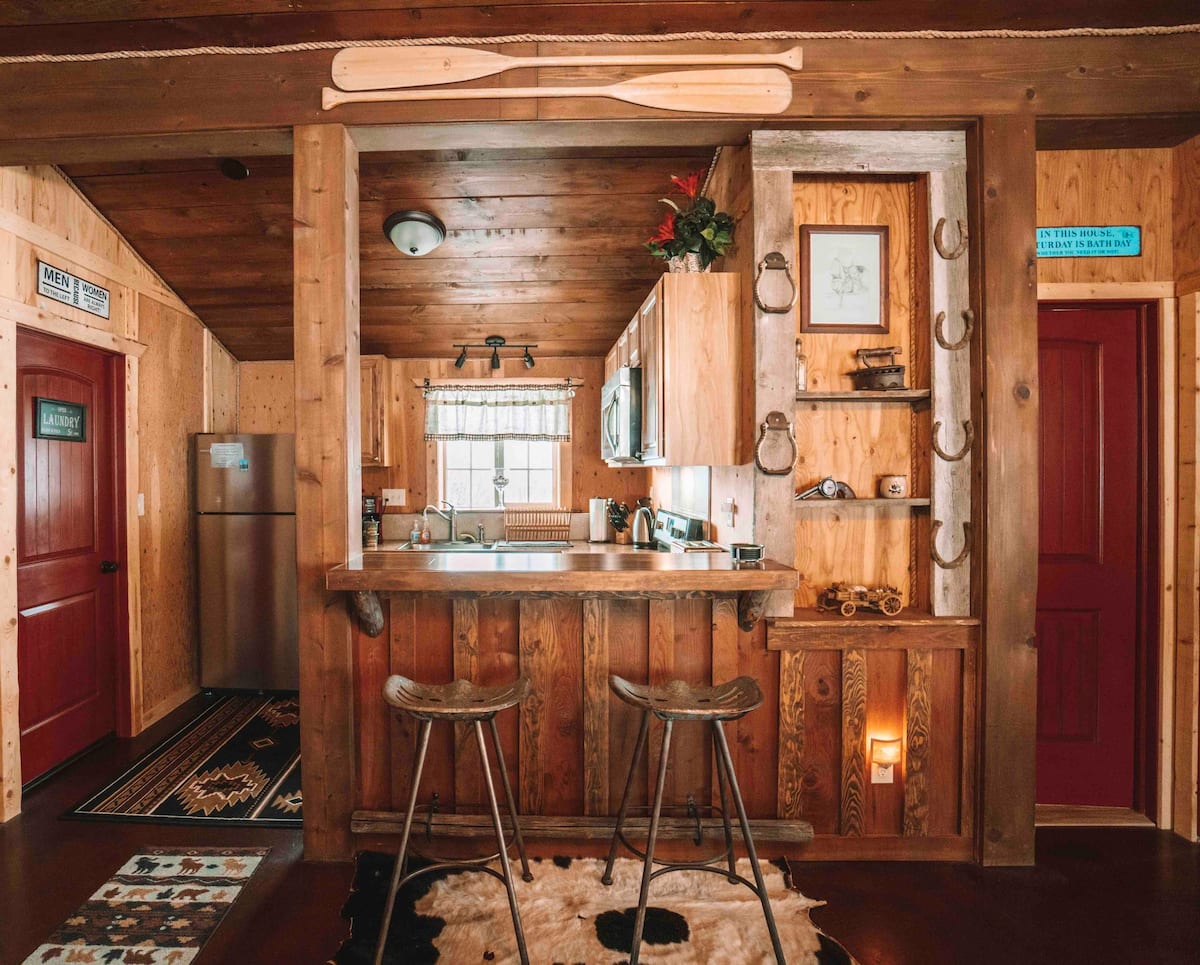Here’s a chance to live out your western frontier dreams and sleep in a rustic saloon on the western side of the Teton mountain range. Ashley’s one-bedroom saloon is located on a 10-acre property in Tetonia, Idaho, just north of the town of Driggs. Her property features a stream as well as views of the Teton mountain range.