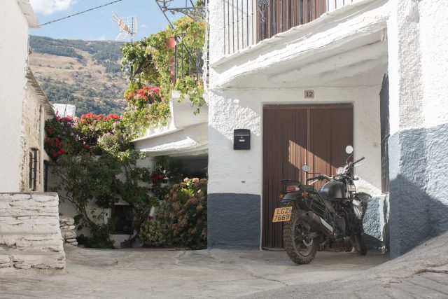 Once back in town there’s no shortage of hotels, hostels, and AirBnbs. We stayed at the Hotel Rural Real de Poqueira, which was around $40 per night (for a double room), and incorporates a restaurant, bar, and swimming pool. It’s very unusual that we stay at hotels on these trips, but it was reasonably priced, and we all agreed that a day off the bikes to swim in the pool, explore the village, eat traditional Spanish food, and enjoy some local wine was too good an opportunity to miss. Capileira’s narrow winding streets are characterized by pretty white Moorish buildings, many of which are draped in beautiful flowers during the summertime. It’s a romantic location, and I spent hours with my camera taking photos of the medieval architecture and mountainous surroundings, drinking espressos, and perusing local shops. Capileira, and its neighboring villages, are famous for high-quality leather goods, and there a number of small artisan stores producing beautiful handmade products.