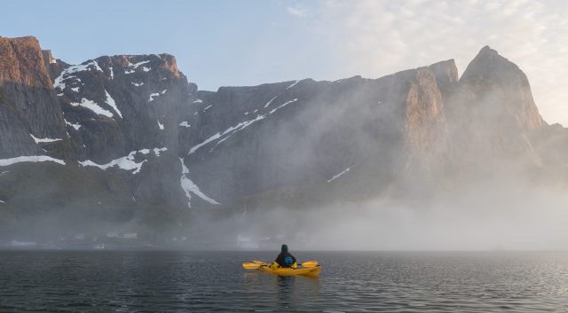 In the summertime, the mountainous area surrounding Reine (part of the Lofotodden National Park) is world-famous for its hiking and mountaineering, sea kayaking (sometimes with orcas), fishing/boat trips, and photography workshops are also very popular. The area is transformed into a frozen wonderland during wintertime, with various cold-weather activities available and frequent Northern Light displays.