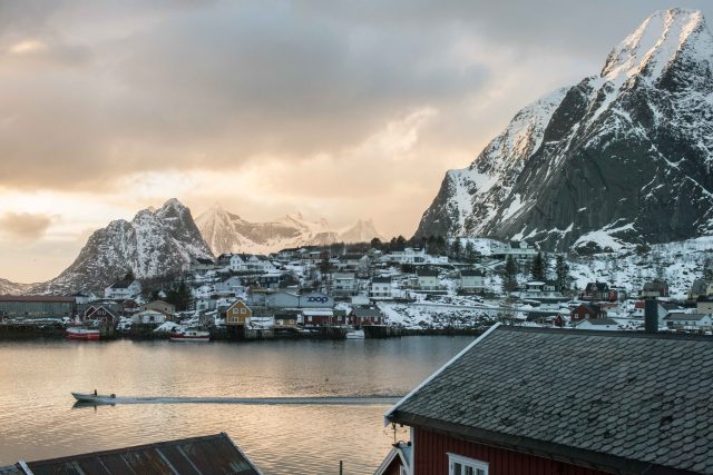 North of the Arctic Circle, nestled amongst dramatic snow-peaked mountains and surrounded by ocean, is the dreamy Norwegian fishing village of Reine. This remote settlement, characterised by wooden rorbuer (traditional fishing huts), and located on the island of Moskenes in the Lofoten archipelago, has been a trading post since 1743. In more recent years, it has become one of the most popular tourist spots in Norway, with approximately 1,000,000 visitors per year.