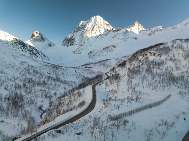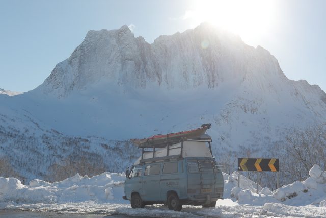 With an abundance of campsites (check winter availability), free overnight park-ups, traditional fishing villages, stunning white-sand beaches, and rugged mountain scenery, Senja is a welcome escape for the overlander. Once you’ve explored the island, take the ferry from Senja to Andenes (a popular location for whale watching), which serves as the perfect access point to road-trip the world-famous Lofoten Islands.