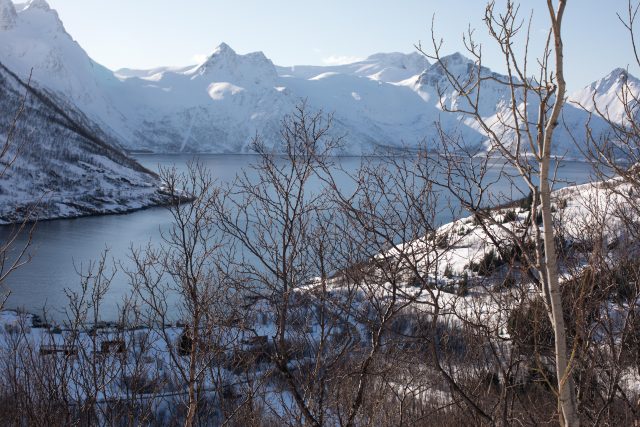 The most popular hike in the area is to Segla, the island’s most famous mountain. This breathtaking 639-metre peak towers above the quaint village of Fjordgard and is best viewed and photographed from the neighbouring Mount Hesten (not pictured as conditions were unsuitable for the hike during my stay). While the total distance to Segla’s summit is only 5 kilometres, it takes approximately four hours due to a number of steep climbs (the hike is rated “Red,” i.e., very demanding). Parking for the trailhead is located close to Fjordgard school. It’s important to note that many hikes, including Segla, can be dangerous during wintertime and should not be attempted without the relevant experience and suitable equipment (more information can be found at visitsenja.no and visitnorway.com).