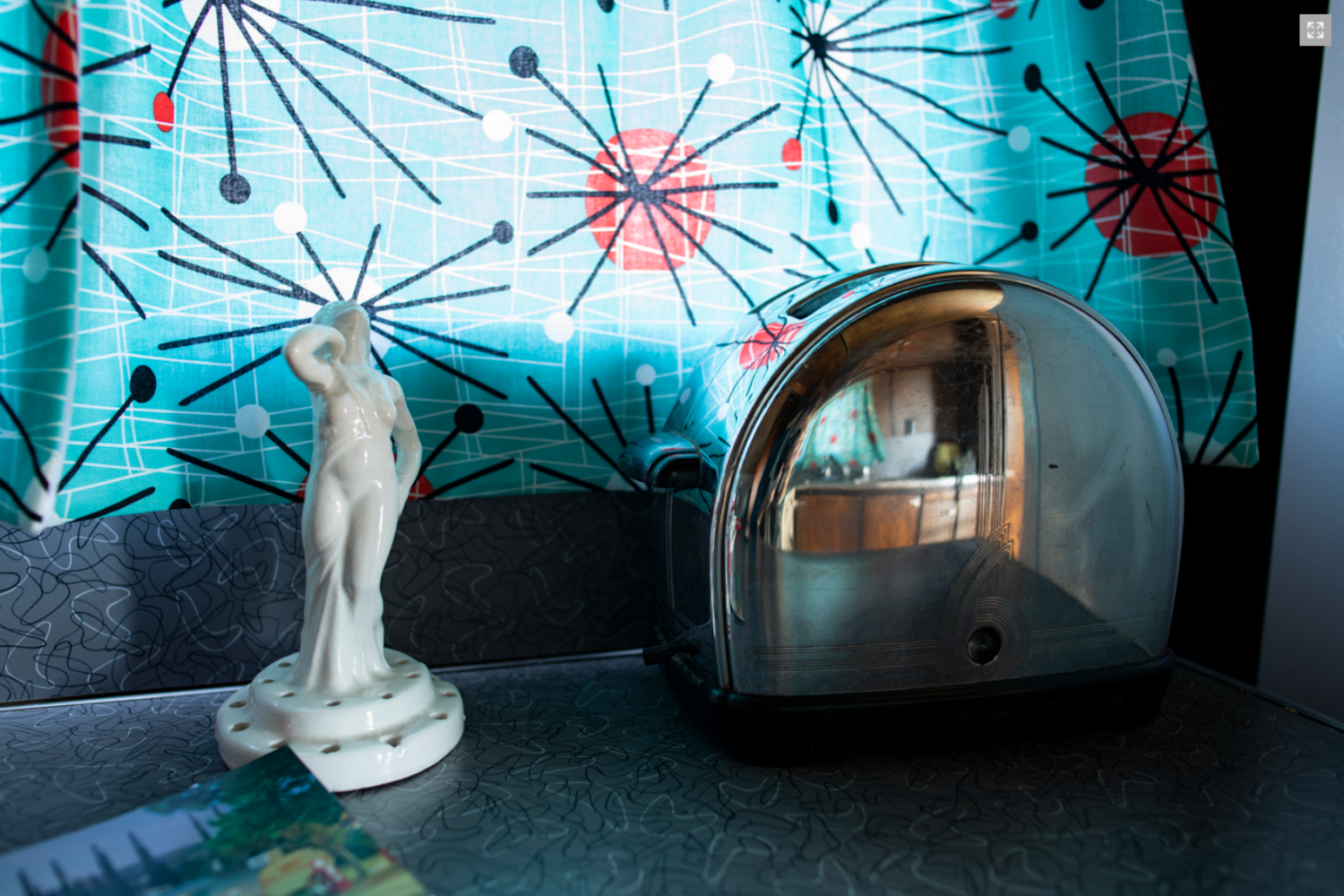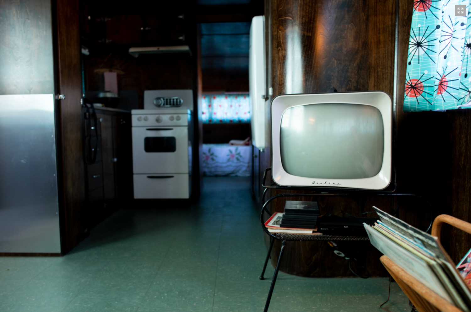 The trailers are all decorated with mid-century items, adding to the sense that you’ve just been transported back to the good old days of cathode ray tubes, phonographs, and percolators.