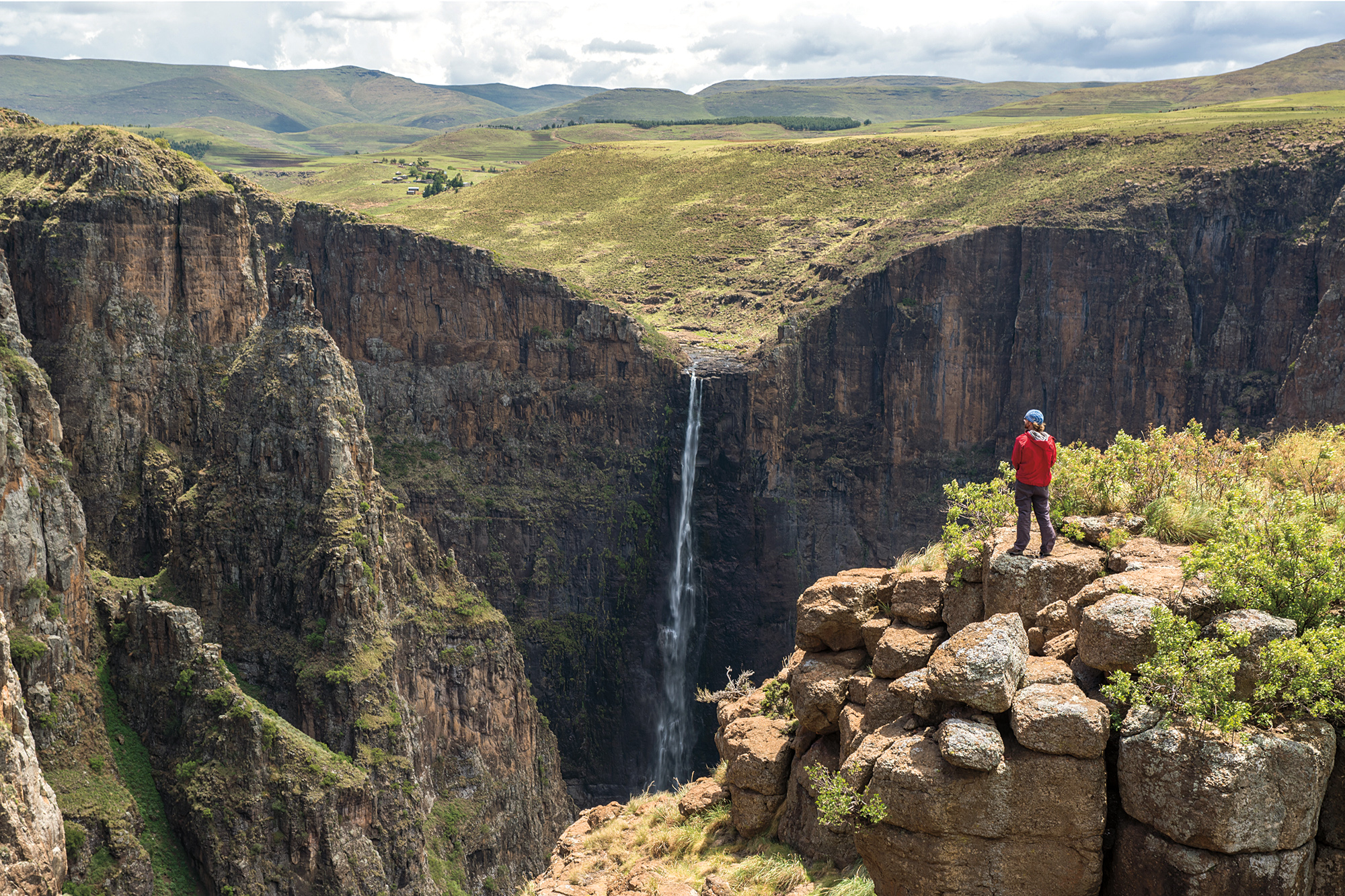 Early the next morning, I hiked to the nearby 192-meter-high waterfall, Maletsunyane, one of the highest single-drop waterfalls in the world. The hike starts directly from Semonkong Lodge and leads through the outskirts of town, where you’re provided with a glimpse of daily village life. Cooking over an open fire, transporting grain to market, watering horses—it all happens before your eyes. I arrived at the outlook and was struck by Maletsunyane’s beauty. The falls were on full display, visible from every direction. It’s worth visiting the area for a few days, approaching the falls from different angles.