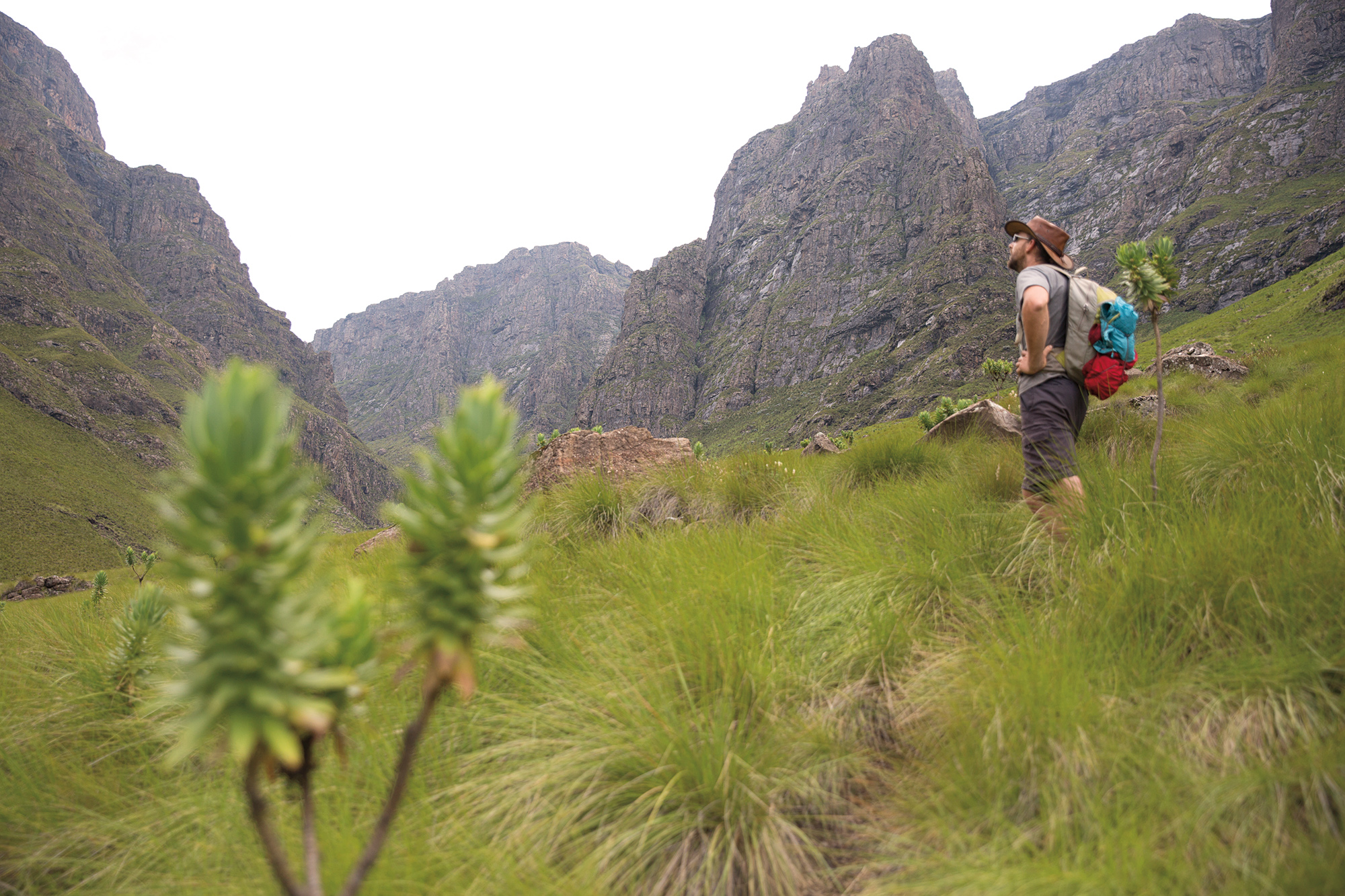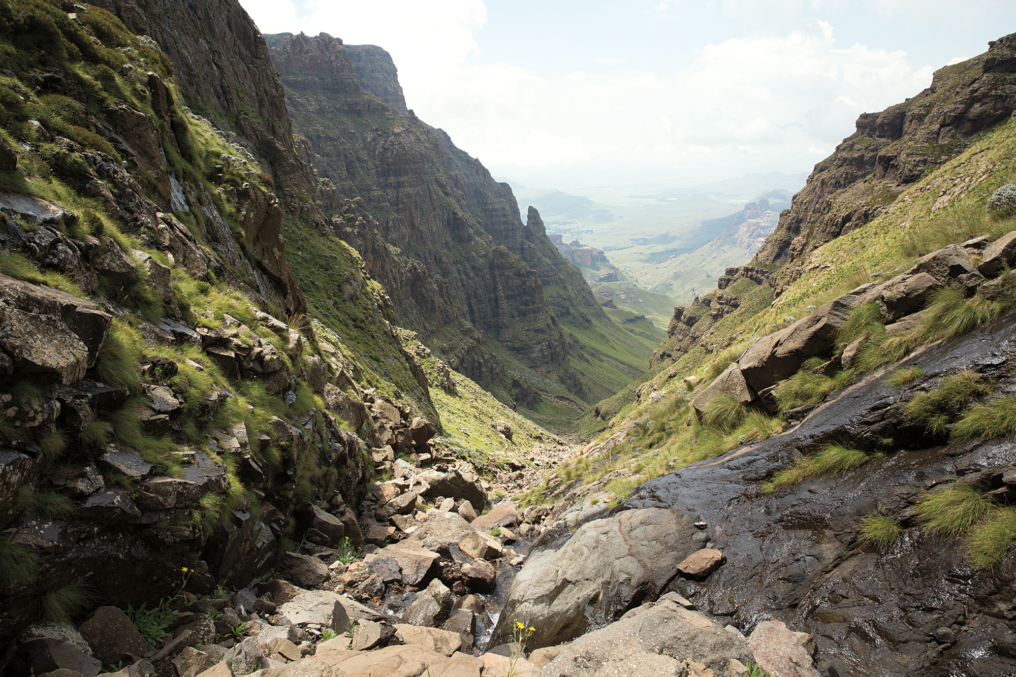 I exited the country at the Qacha’s Nek Border Post and drove to Khotso Lodge and Horse Trails in Underberg, South Africa, for a three-day horse trek into the Maloti Mountains and Sehlabathebe National Park. Khotso is one of the only companies to offer this trek, and travellers come from all over the world to venture unencumbered into the vast wilds of the region. Sehlabathebe National Park is small in size but not in stature, with an inviting biological diversity of grasslands and wildflowers, unique rock dwellings, waterfalls, and pools. Each ridge gives way to yet another picturesque valley, and the silence of the scene, which seems to stretch on forever, is rejuvenating.