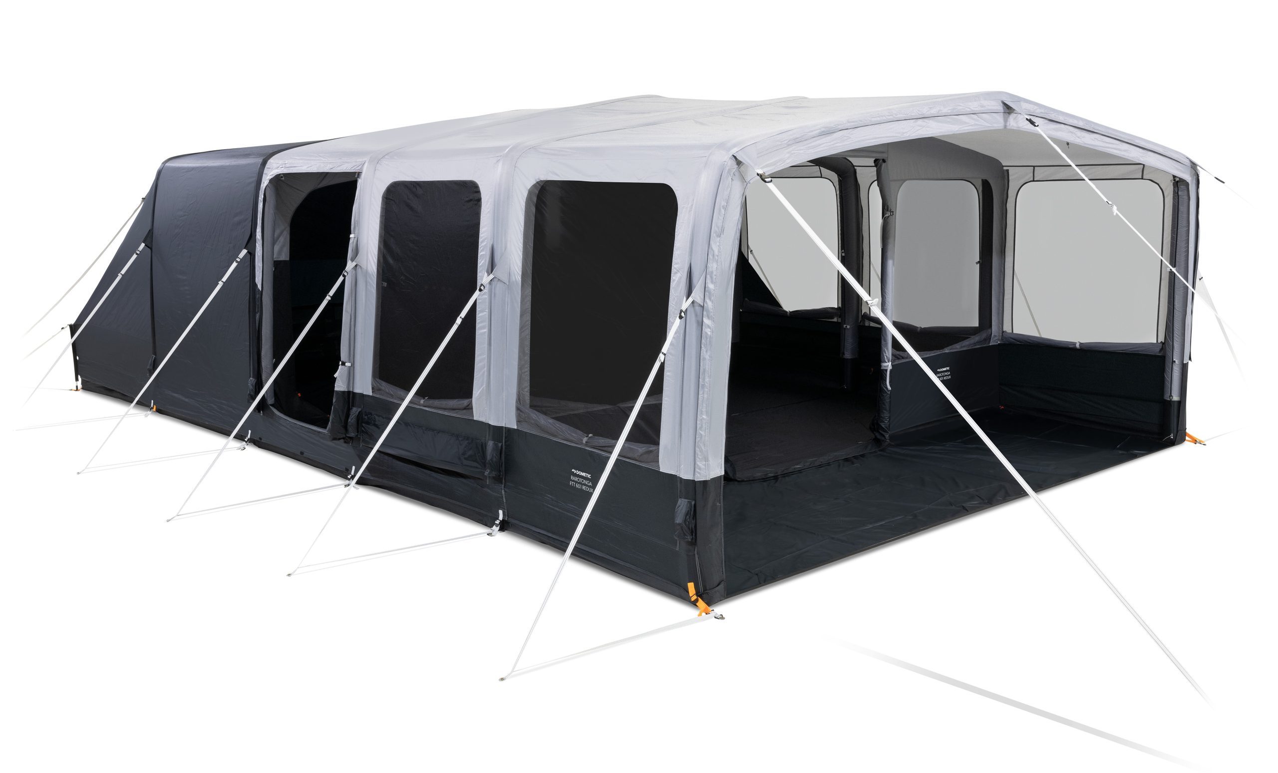 The Dometic Rarotonga tents are designed as comfortable and versatile family camping tents that use Dometic’s Multi-Point Inflation technology for a simple setup with a manual pump or your onboard air compressor. The Rarotonga is available in four- or six-berth options providing generous space for a family, group of friends, or as a “base camp” for those travelers who need extra space for gear. Both tents provide generous living proportions, including an integral enclosed porch area and a structure that maximizes head height all the way across the width by employing near-vertical walls.