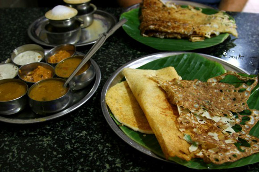 The food in Chennai was life-changing. Every day we emerged from our hotel and found our way to one of the hole-in-the-wall restaurants lining the chaotic streets. Sometimes it was simple, as in the case of Briyani Boy, who had invited me to take his photo. He served mutton briyani into a page from the day’s newspaper, and then we would stand on the sidewalk eating it with our hands. Other times we sat inside of sweltering restaurants while fans pushed the humid air around, and we gorged ourselves on mouthwatering curries and South Indian specialties like dosa, idly, puri, or the all-you-can-eat South Indian thali. Always we ate with our hands—but only the right, as the left hand has a single and kind of gross purpose in India, and is not to come into contact with food. We drank masala tea, served in steel cups and poured back and forth between the cup and deep saucer repeatedly from such high heights to mix and cool it before drinking. And invariably the most expensive entrée on any menu hovered around a dollar or two.