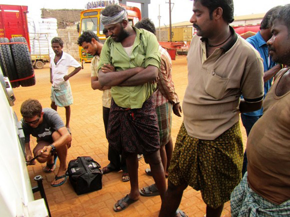 The next day, after a couple of hours of paperwork, it was time for the grand finale. We opened the container, and prepared to remove Nacho. In true Indian style, the moment that the doors were opened people emerged from the woodwork and surrounded the container to watch. All work at the port seemed to cease, and I emerged to the blank stares of a dozen dead-eyed onlookers.