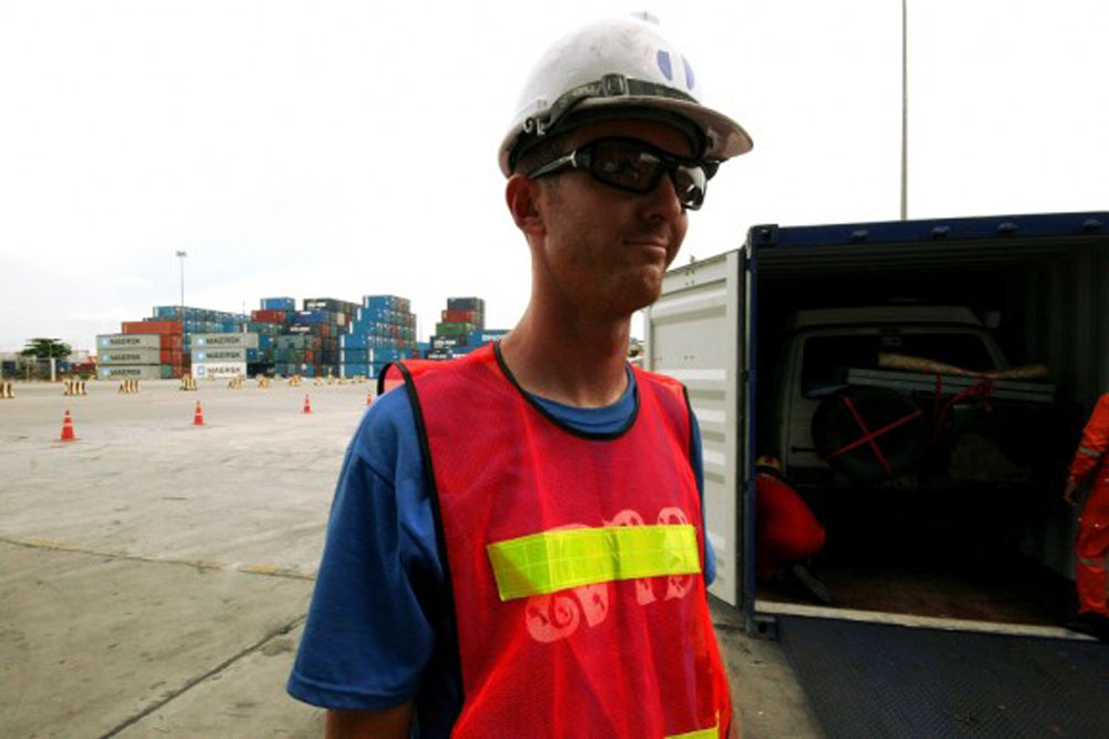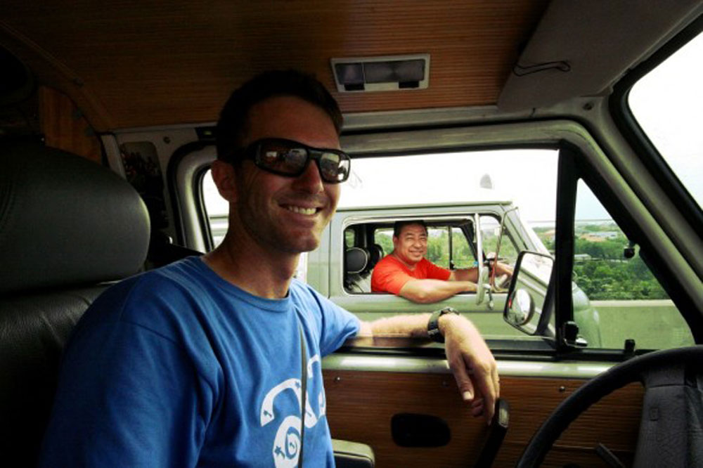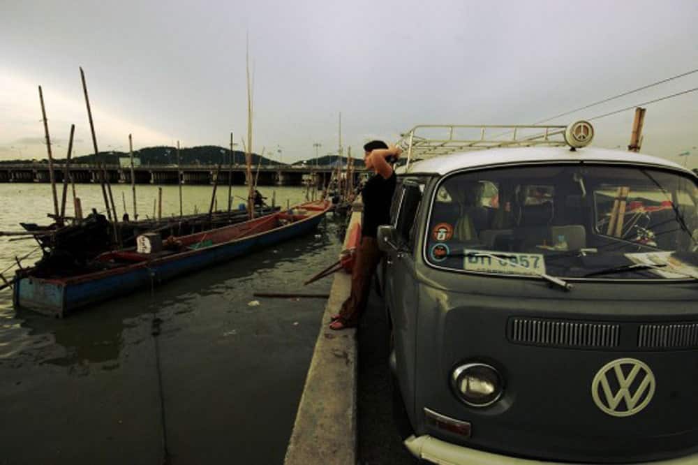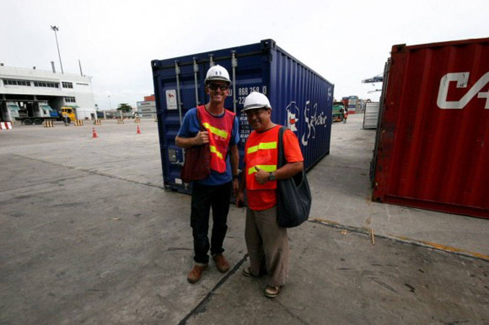 Our apartment is situated only five minutes from Bangkok Port, but we’ve just received word from our shipping agent that container loading has been moved to Laem Chabang Port, 100 kilometers away. Helpful as always, our agents at Hellmann Logistics offer to drive out to the port with us for container loading, and the give us a ride back to our apartment—a full day of work and half a tank of gas, and at no charge. But when our Thai friend Gak catches word of this, he simply won’t have it. If anyone is to accompany us to the port, it will be him! We let Hellmann off the hook and follow Gak, in his 1960′s VW bus, to Laem Chabang.