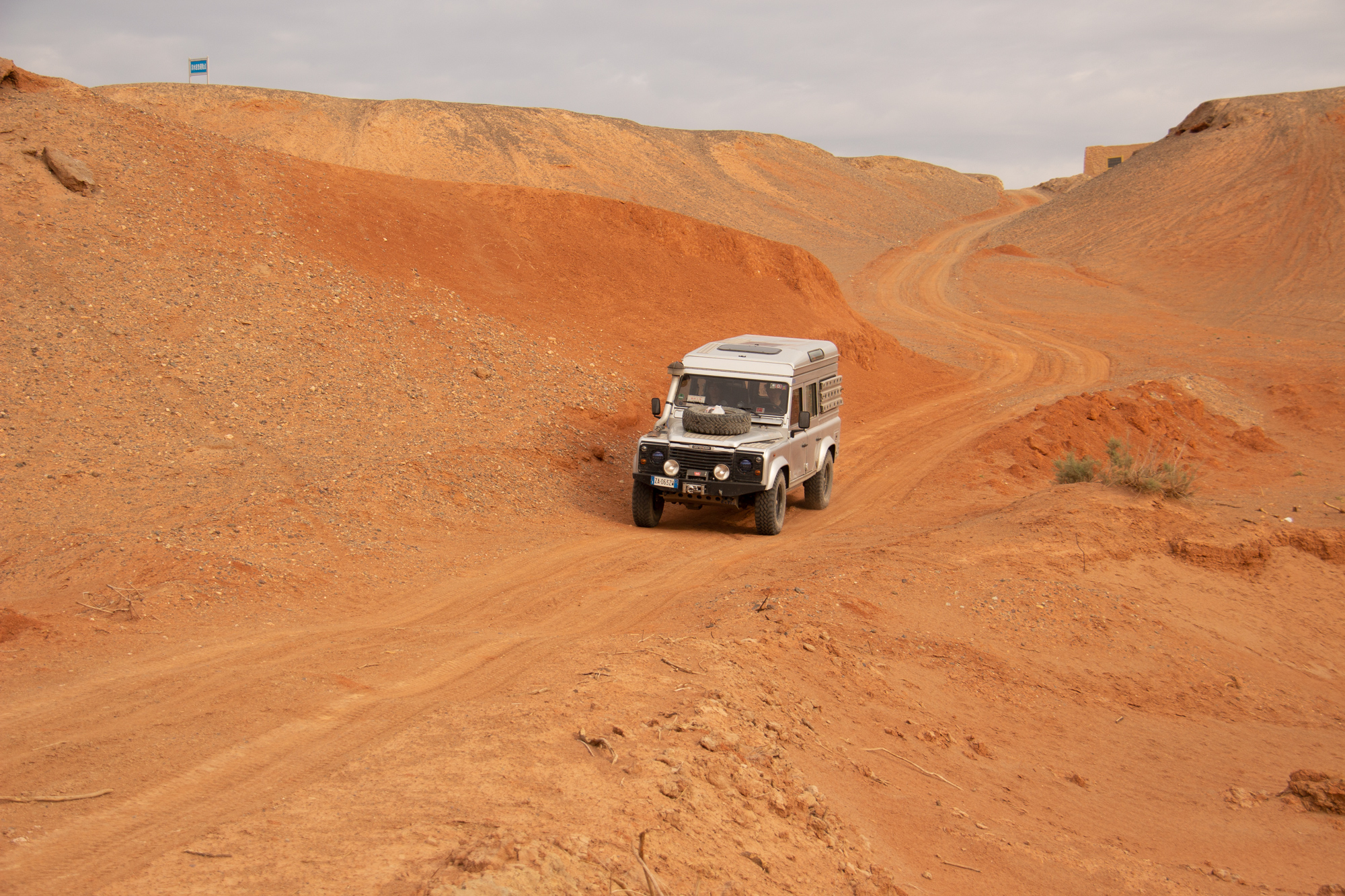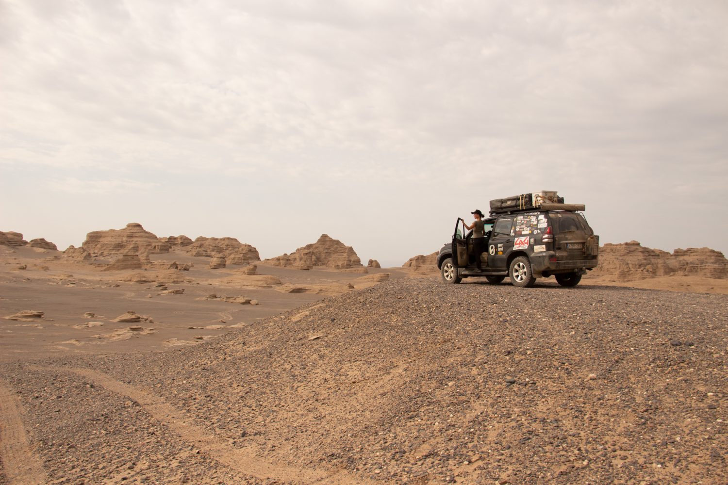 Giampiero’s Defender, on the desolate tracks of Xinjiang near Hami.