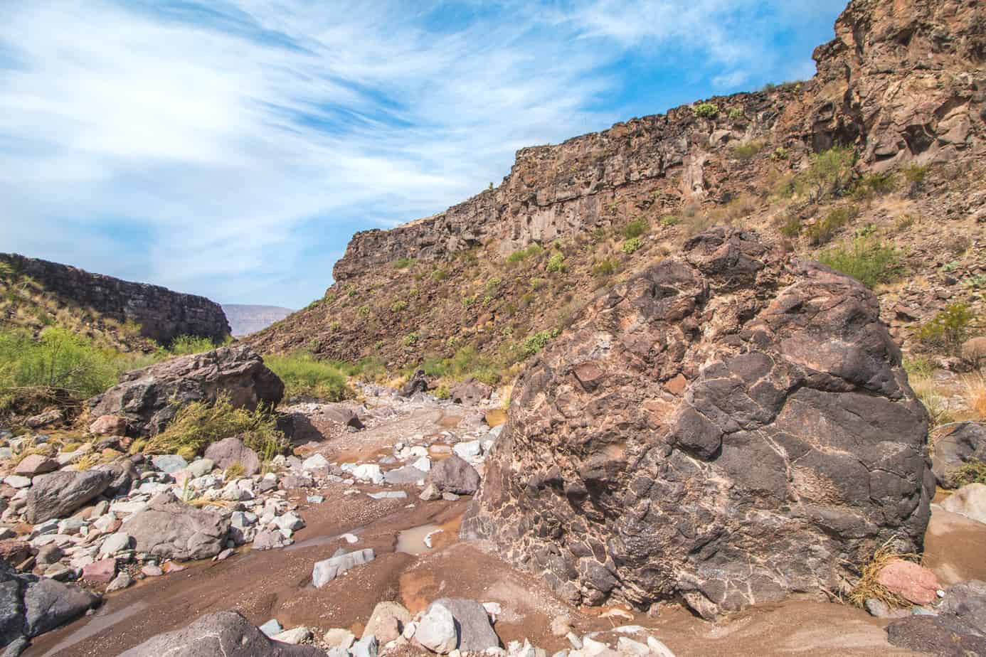 Our first stop would now be the historic hot springs district, a former homestead and resort developed by the Langford family in the early 1900s. While the area contains petroglyphs and some very cool buildings, most people visit it to soak in the remnants of the Langford bathhouse, which pumps in hot water from the natural spring. Given the sweltering temperatures of the day though, we were more interested in a dip along the border. I set down the camera on the shore and let the cool waters of the Rio Grande rush over me, enjoying the notion that one country lay a few yards to my right, while another was just a few yards to the left.