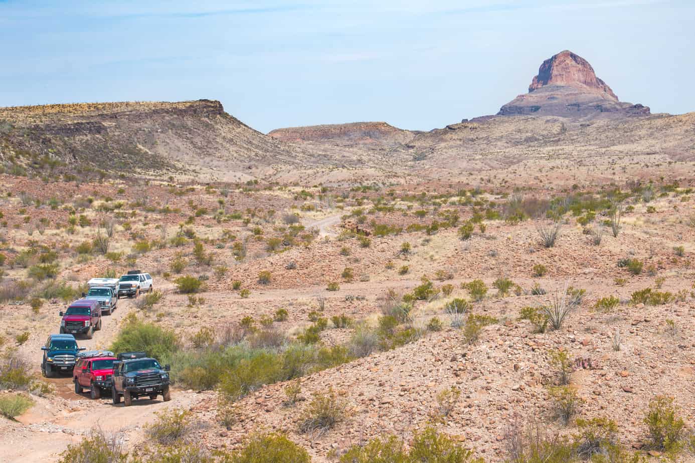 For those who haven’t visited before, Marathon is a small town situated just north of Big Bend National Park. While it’s not exactly a metropolis, it’s pretty much the last slice of civilization north of the border, making it a perfect location to fuel, stock up on supplies, and coordinate with friends before losing cell service. For all those reasons, and the cafe’s excellent breakfast burritos, we chose to make it our rendezvous point for the first-ever Diesel Incursion. The “DI” is a little event organized by PSP Diesel’s new overland outfitter division. Their goal is to bring diesel truck enthusiasts together and allow them to experience the beauty of nature and the attraction of overlanding. They kept the group small for their first trial run, but by that evening there were still seven diesel trucks parked in a row and ready for the adventure ahead. We opened the fridges, passed around beers, and started to get to know our soon-to-be friends.